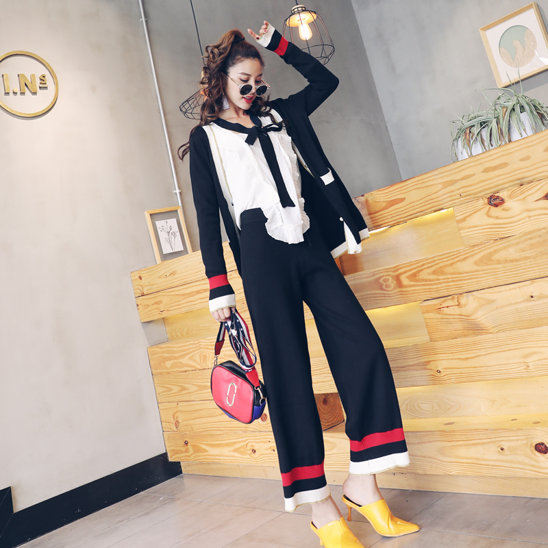 名媛氣質2018春季新款韓版休閑時尚針織套裝寬松顯瘦兩件套女裝潮