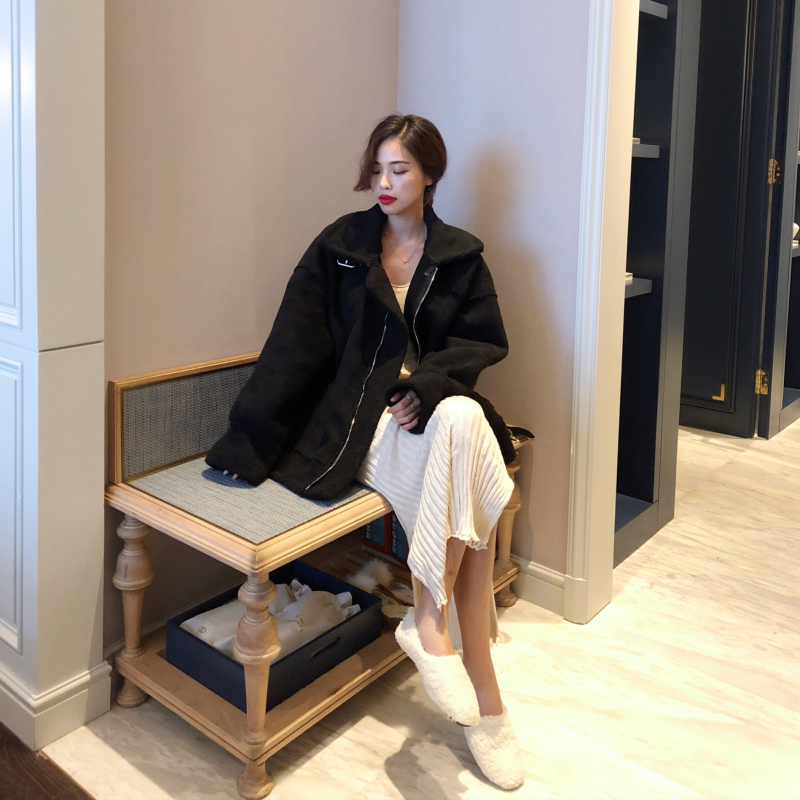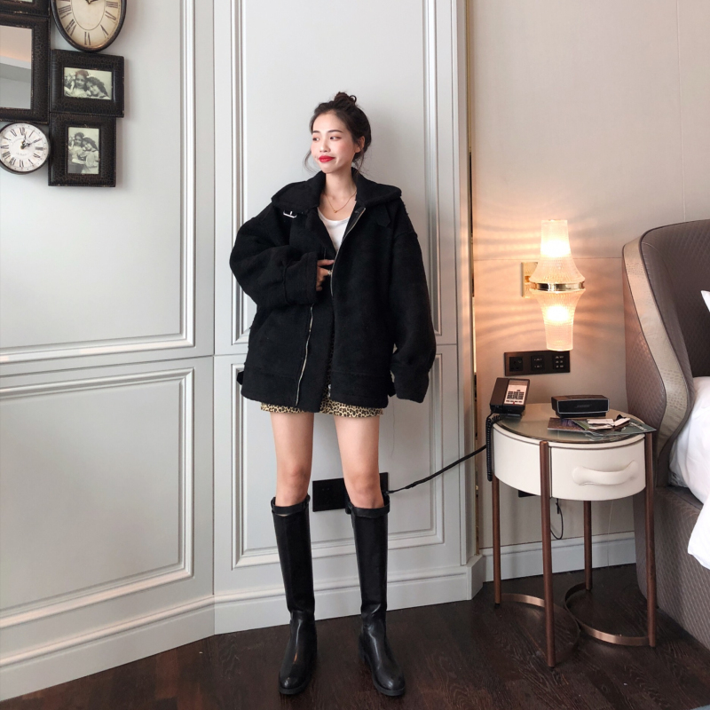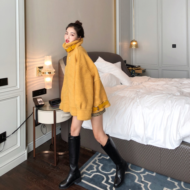 / 外套女韓版秋冬新款chic復古百搭寬松加厚長袖大翻領休閑呢子大衣