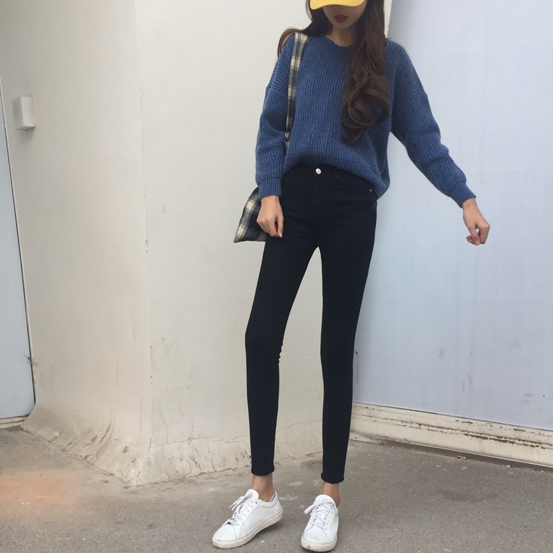2018秋季新款外穿褲子潮修身顯瘦彈力鉛筆褲高腰九分小腳牛仔褲女
