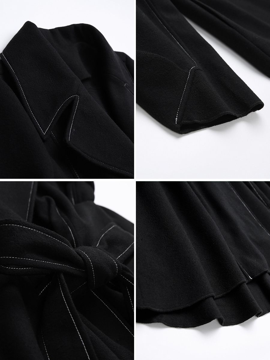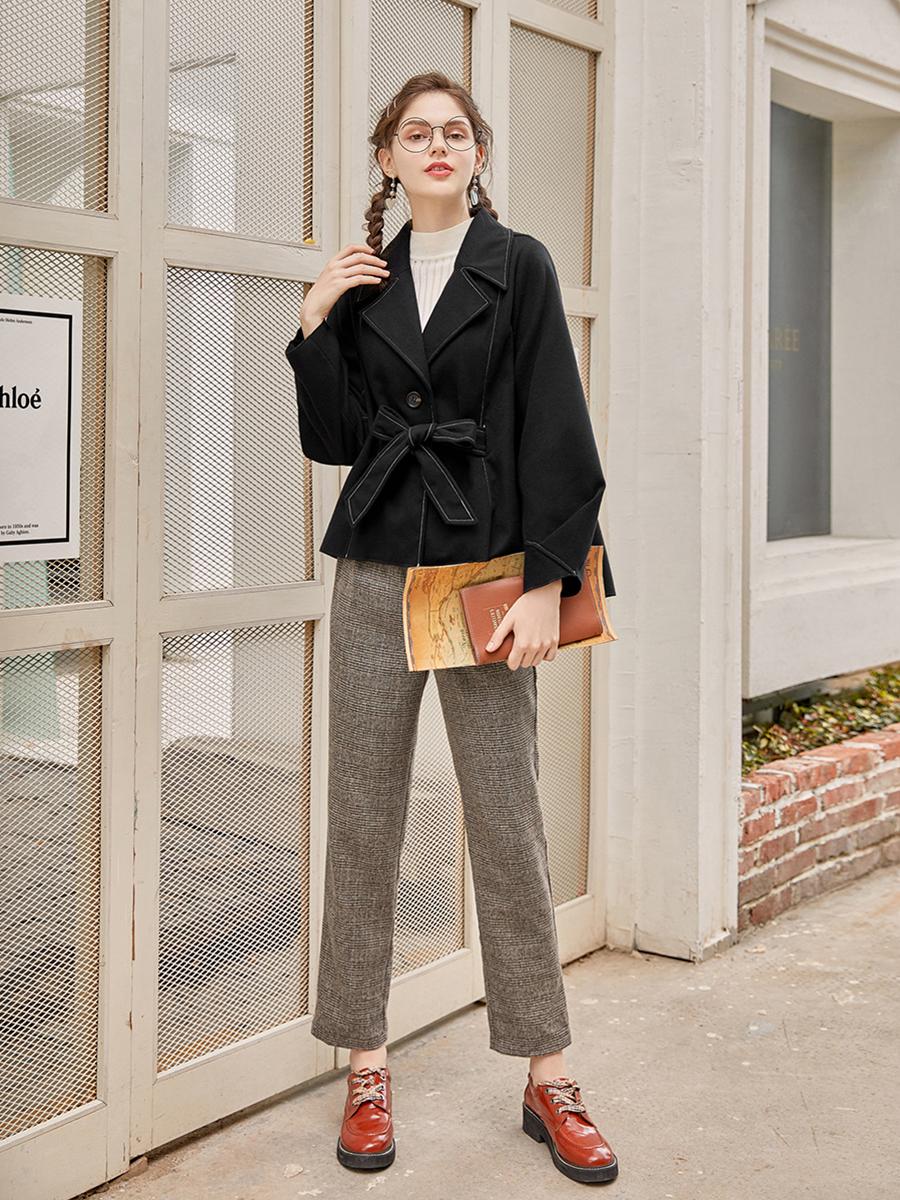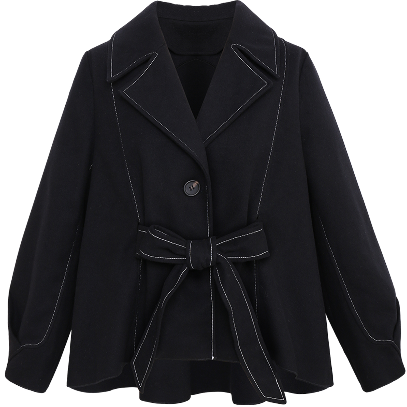 MG小象短款毛呢外套女新款蝴蝶結寬松上衣黑色2018流行妮子大衣潮