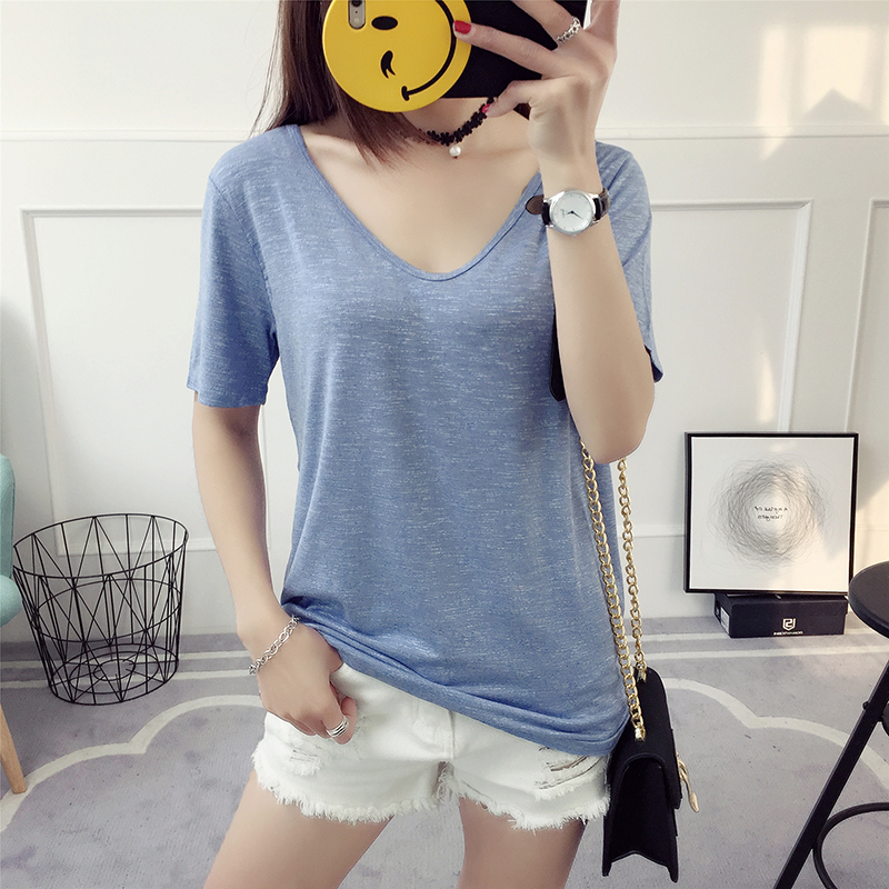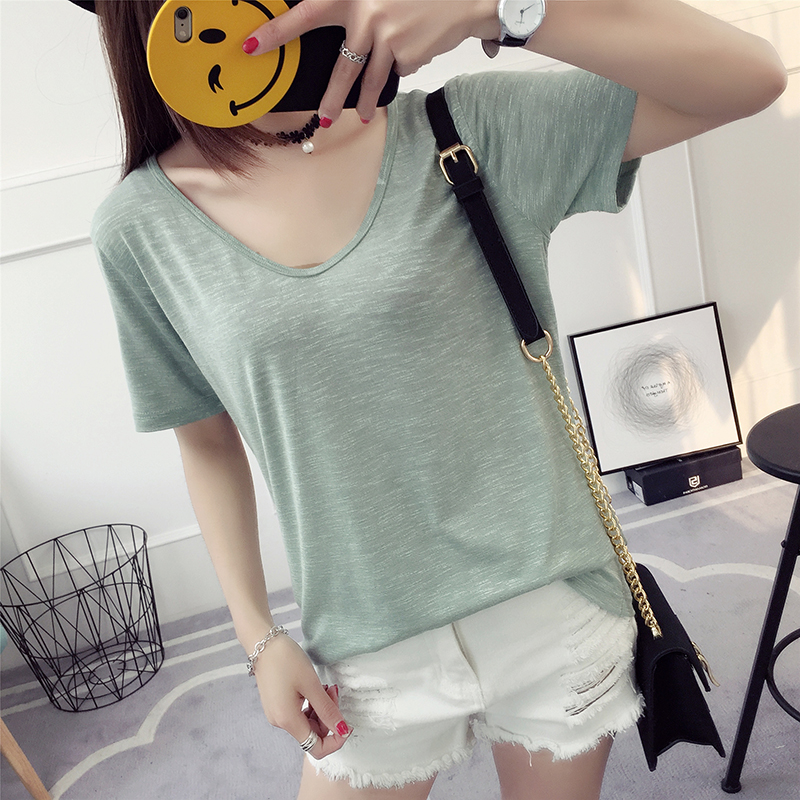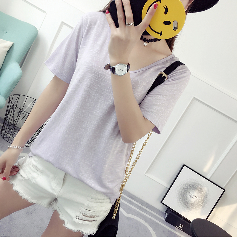 / 純色t恤女短袖打底衫春季新款女夏裝韓版寬松百搭學院風上衣