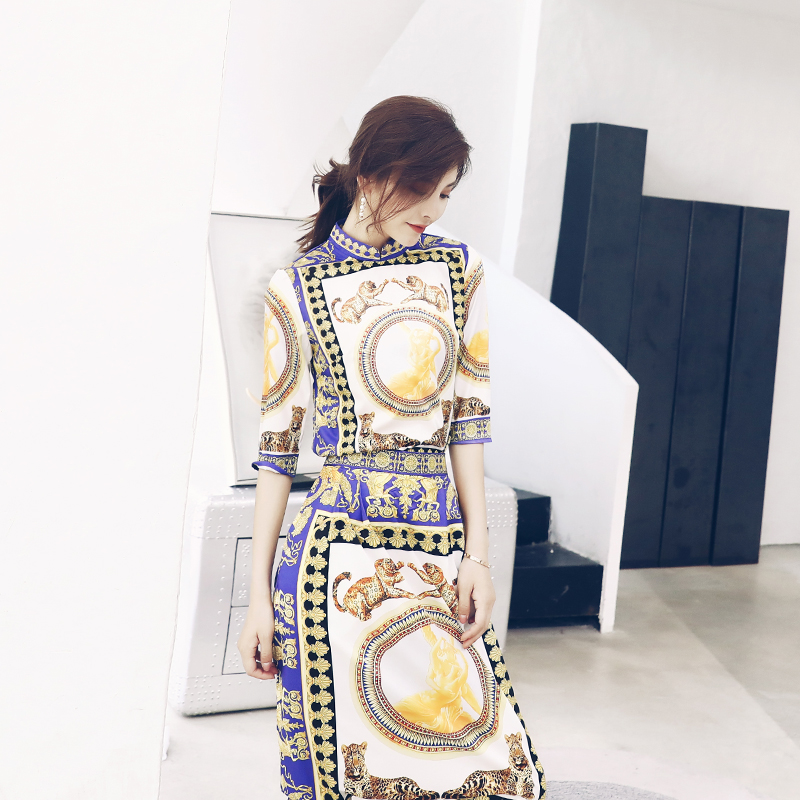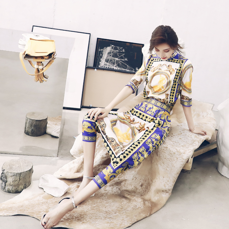 / 名媛氣質夏兩件套2018新款五分袖印花上衣裙褲時尚女裝chic套裝潮