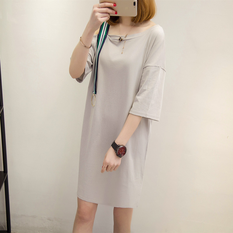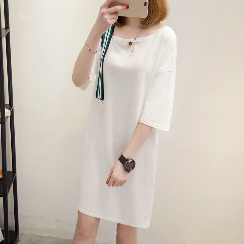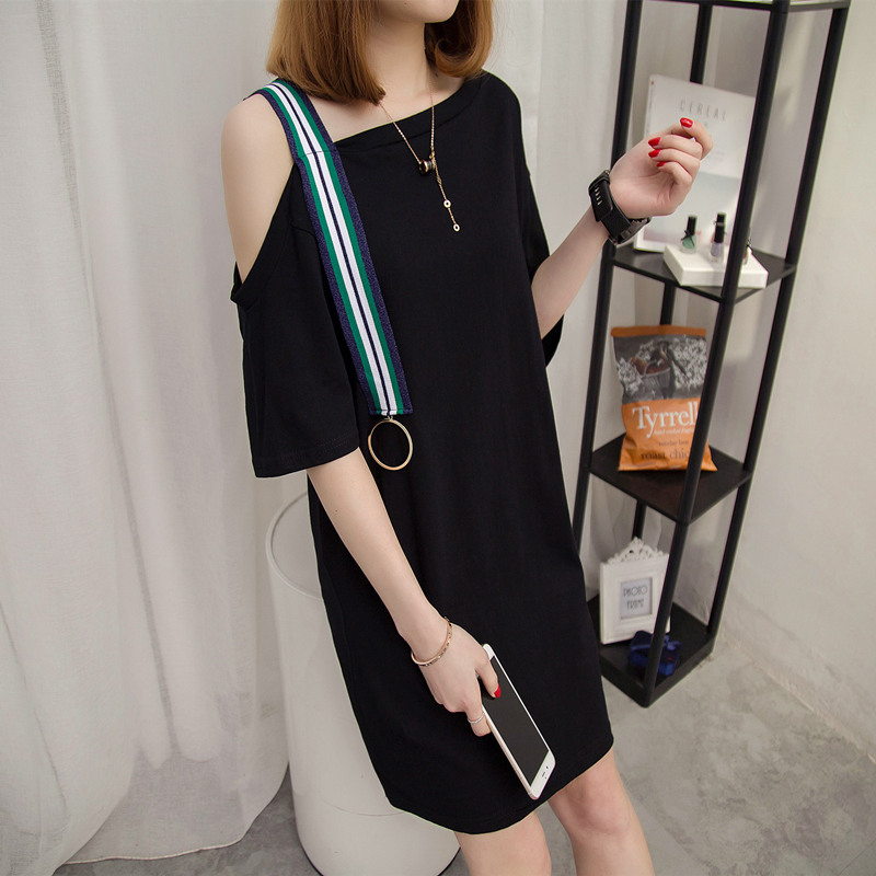 / 女裝夏裝新款潮中長款上衣白色t恤女短袖露肩寬松打底衫韓版