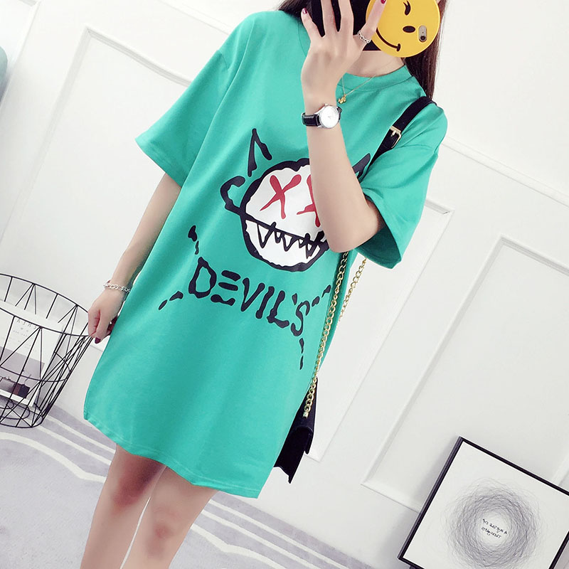/ 夏裝新款韓版百搭學生寬松上衣中長款打底衫短袖t恤女半截袖