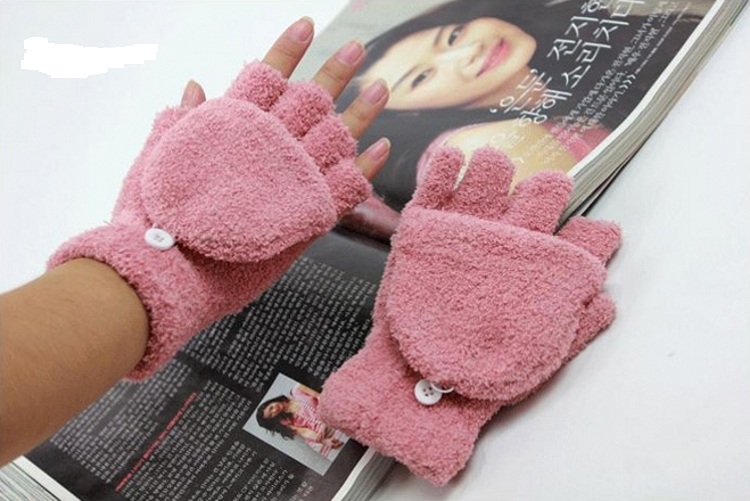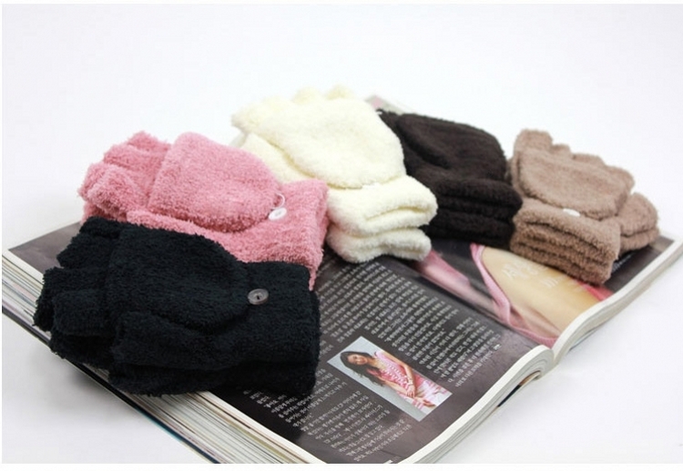 / 秋冬韓版軟綿綿露半指翻蓋兩用學生騎車全指保暖手套男女潮