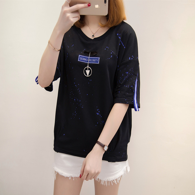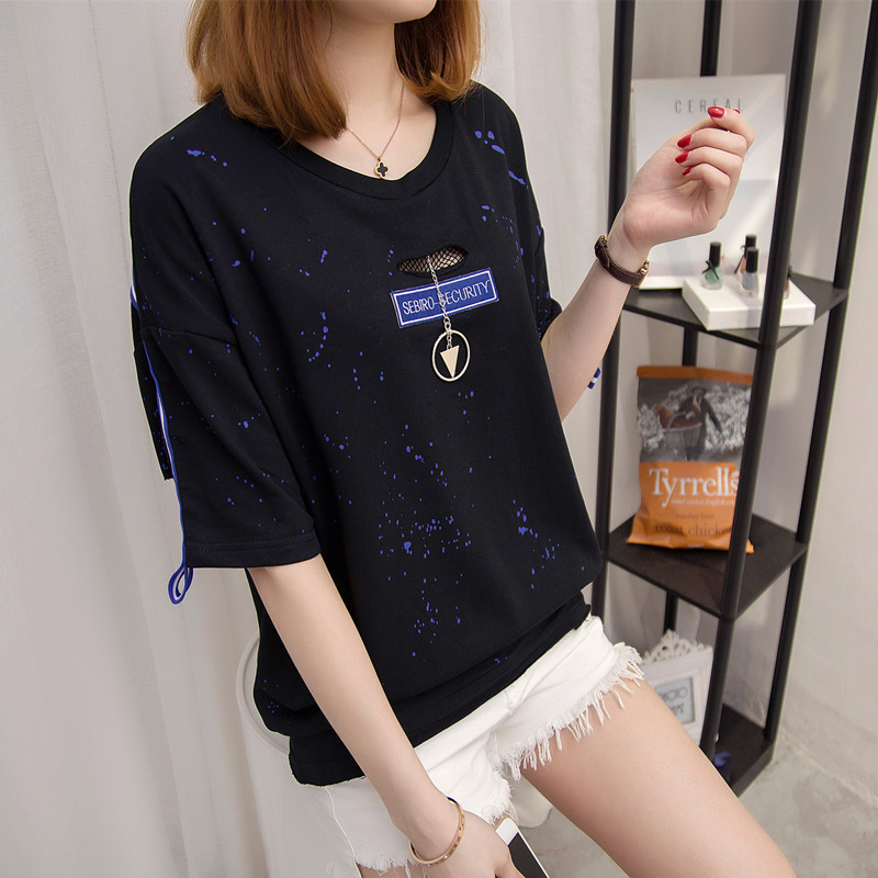 短袖上衣女夏裝新款破洞白色t恤女春季韓版打底百搭體恤衫潮