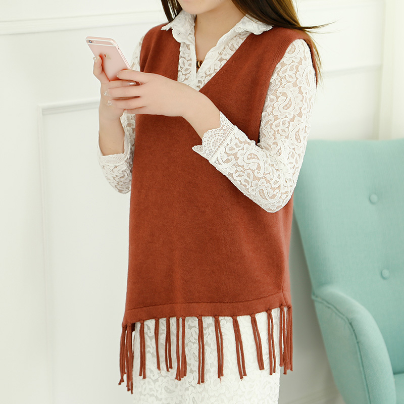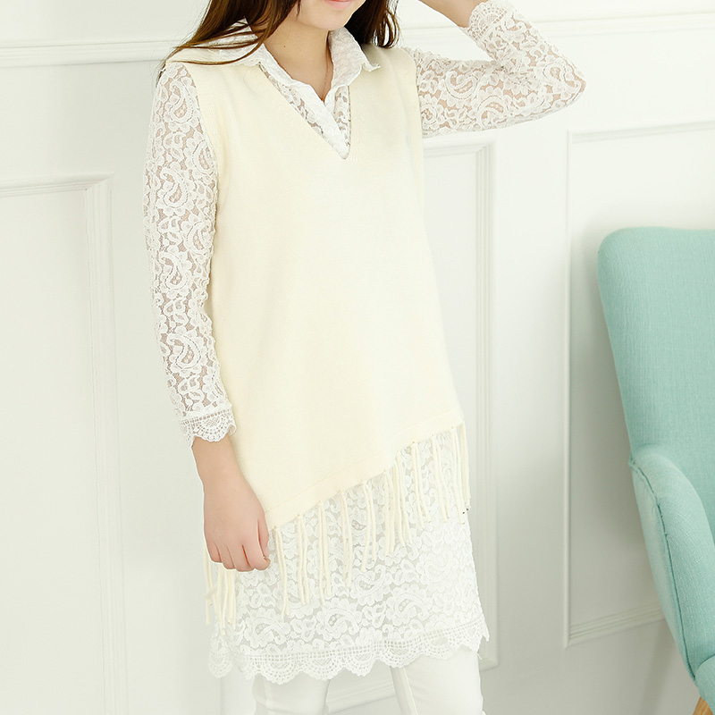 / 韓版兩件套套裝裙春裝新款女流蘇針織衫蕾絲連衣裙春秋女裝潮