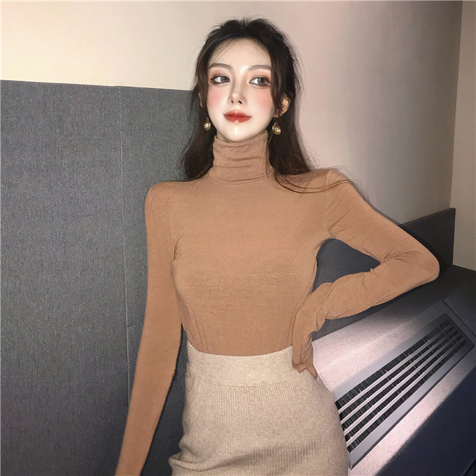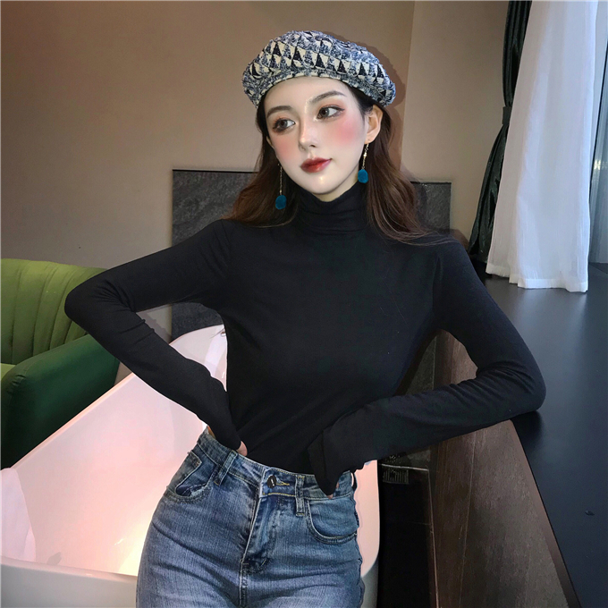 2018秋冬新款chic高領親膚顯瘦修身打底長袖T恤時尚簡約純色上衣