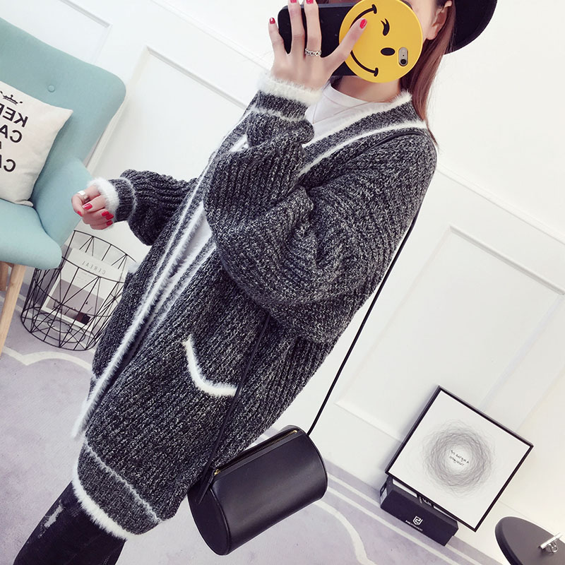 針織外套開衫毛衣女春秋中長款厚寬松韓版春秋冬學生百搭上衣