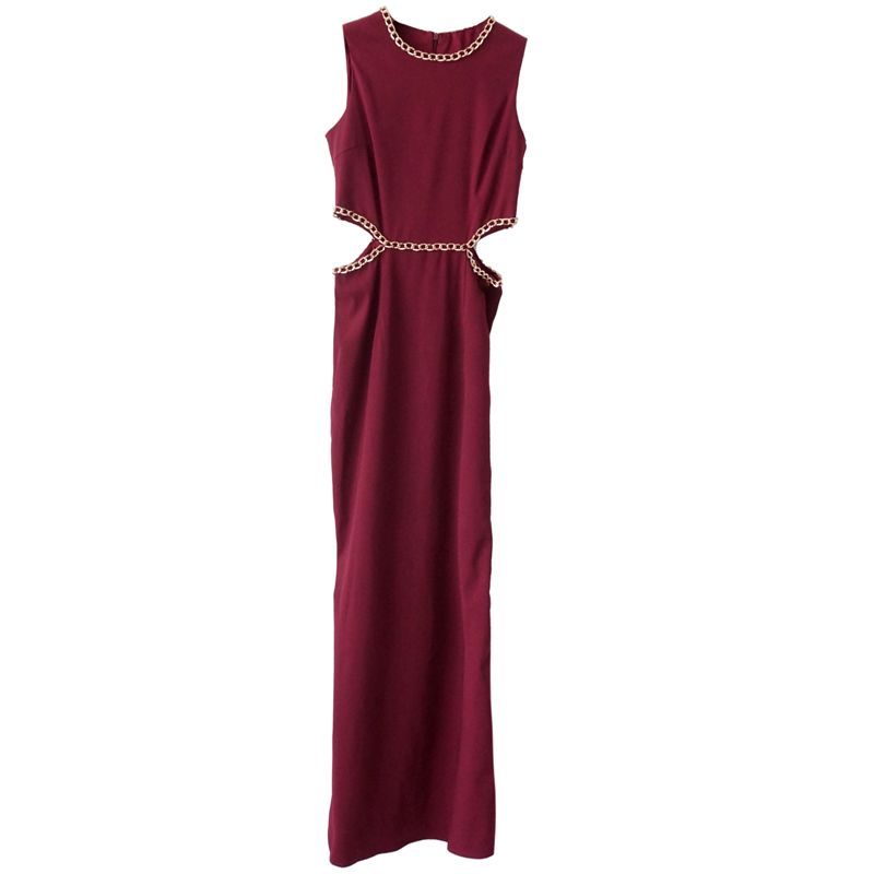 / 2018夏裝新款開叉性感修身顯瘦無袖長款露腰心機連衣裙紅色禮服裙
