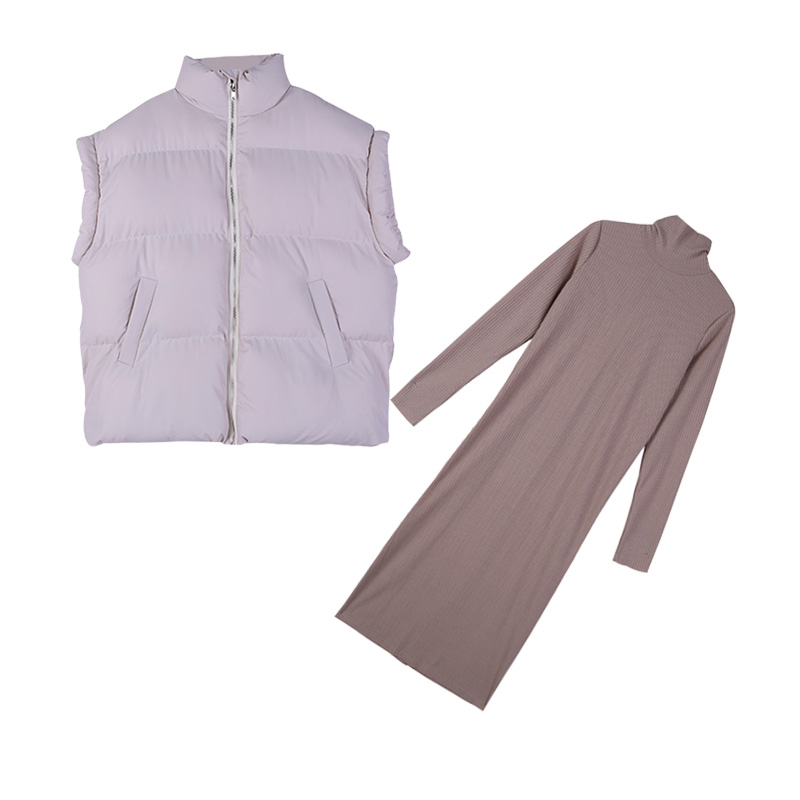 / 新款秋冬季棉服馬甲外套時尚套裝半高領坑條打底連衣裙chic兩件套