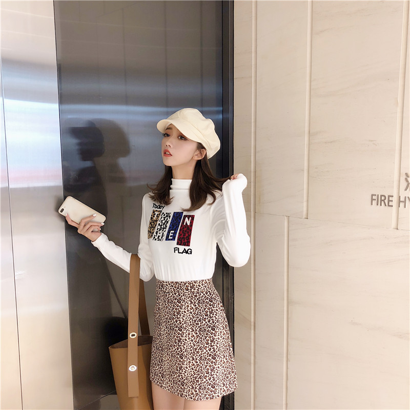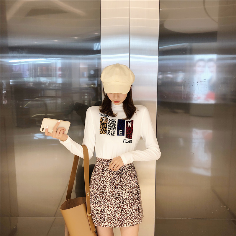 / 新款時尚豹紋貼圖金絲絨加厚保暖貼身打底衣