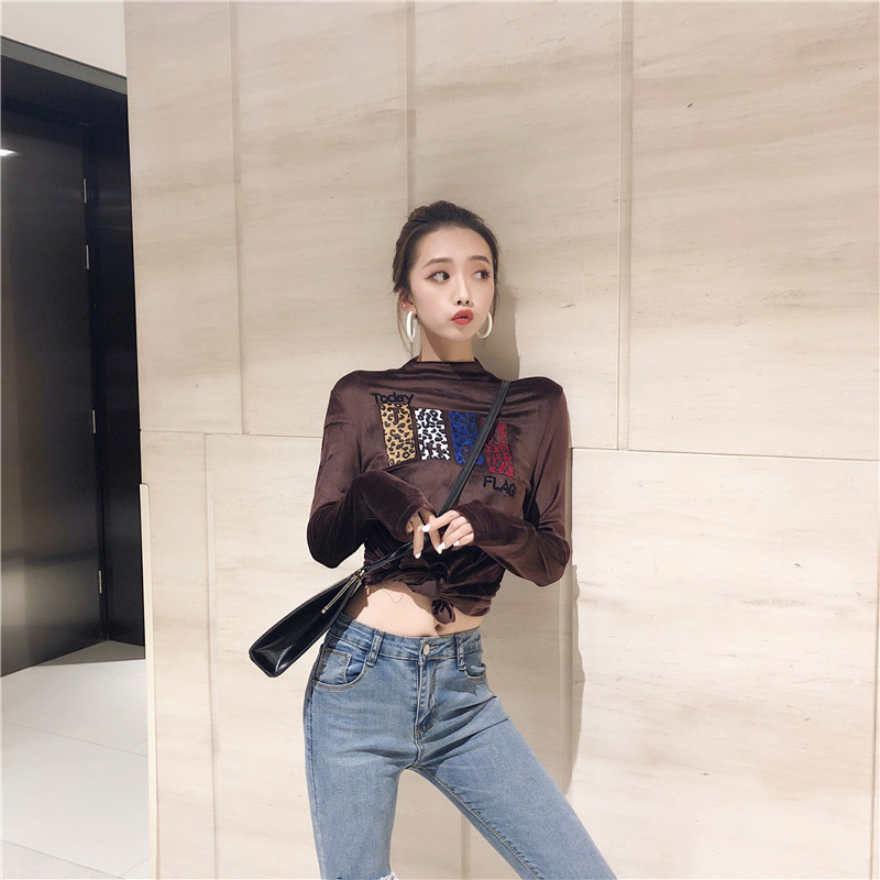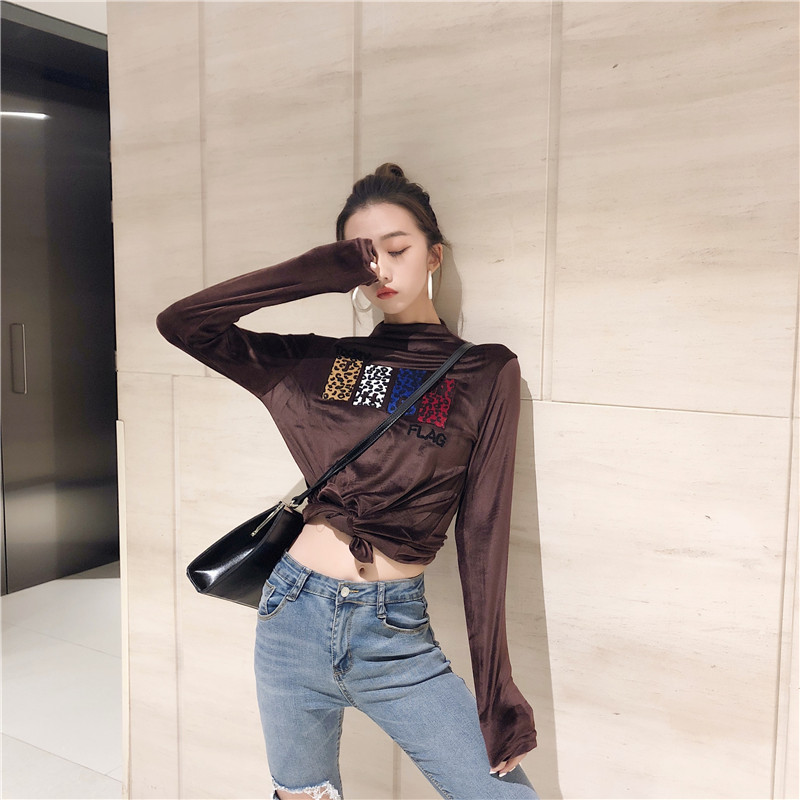 新款時尚豹紋貼圖金絲絨加厚保暖貼身打底衣