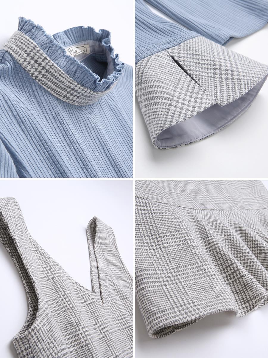/ MG小象chic毛針織衫女秋冬新款格子背帶連衣裙小清新喇叭袖上衣潮