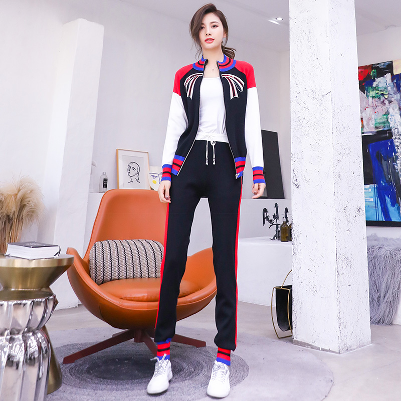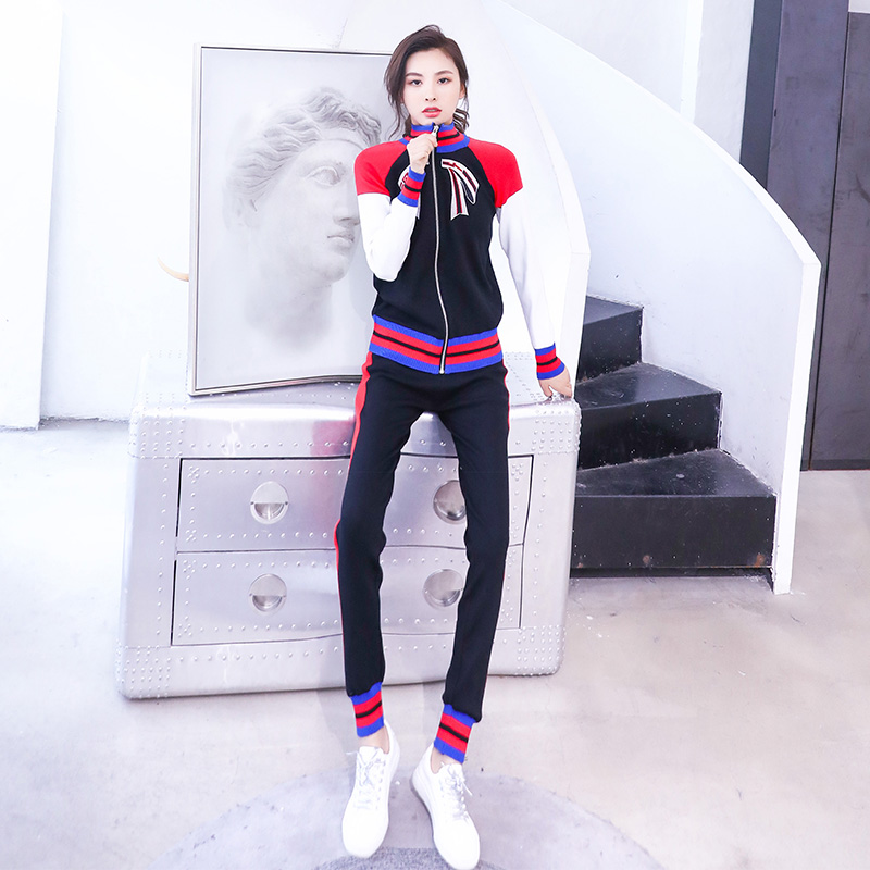 / 歐洲站2018秋裝新款針織休閑運動服套裝女秋冬裝網紅兩件套時尚潮