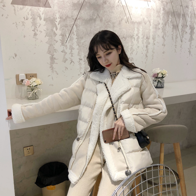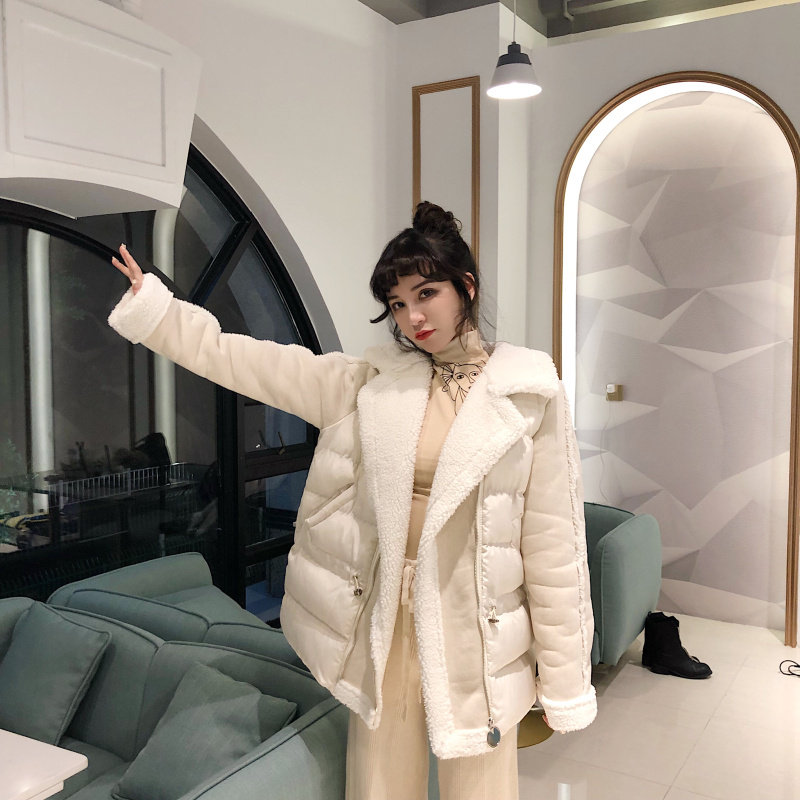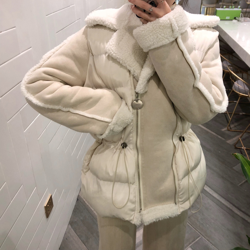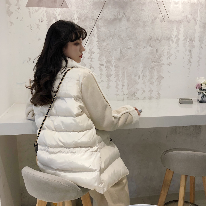 保暖加厚新款韓版秋冬時尚大翻領外搭棉衣拼接一體收腰松緊外套女