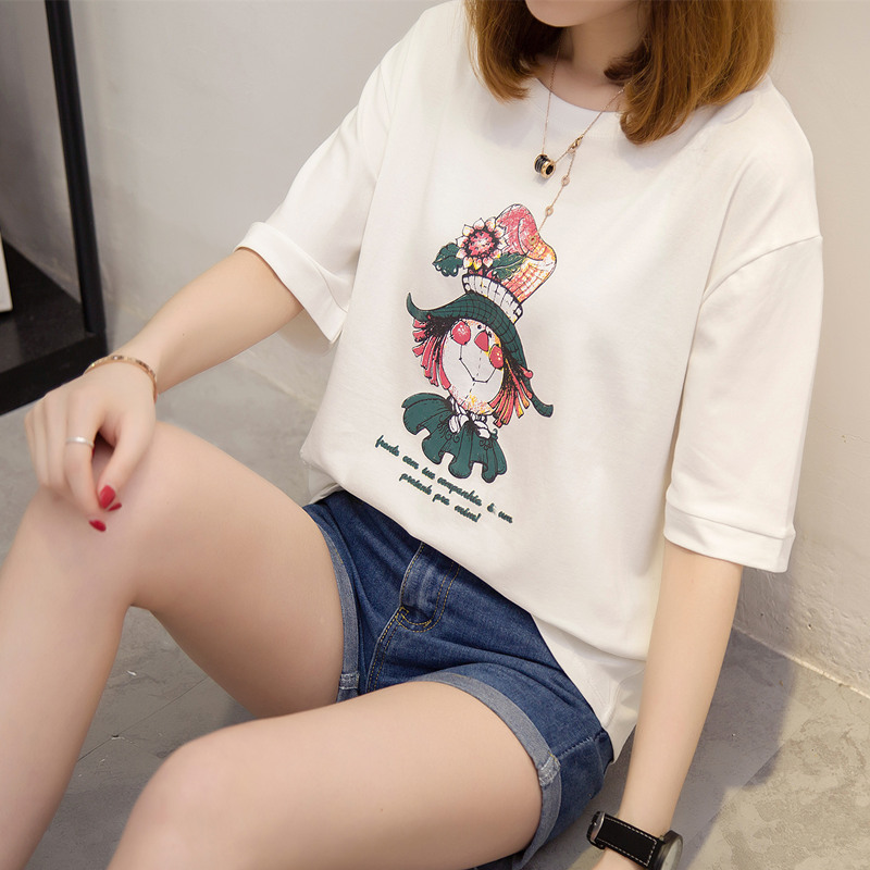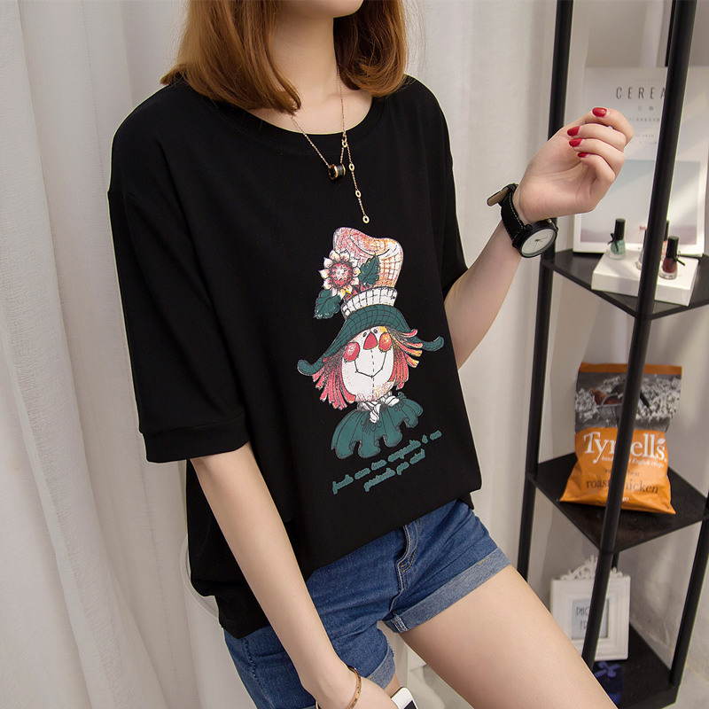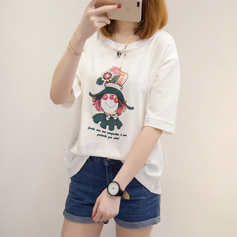 短袖t恤女夏季新款韓版寬松破洞印花打底體恤衫百搭上衣女潮