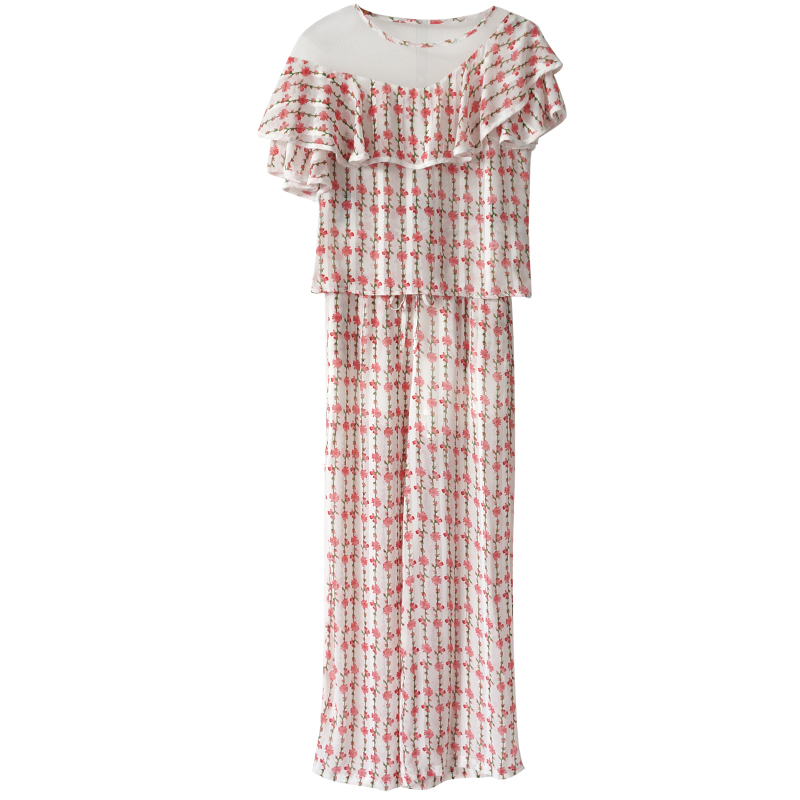 / 時尚夏季網紅短袖夏裝女套裝2018新款名媛印花闊腿長褲氣質兩件套