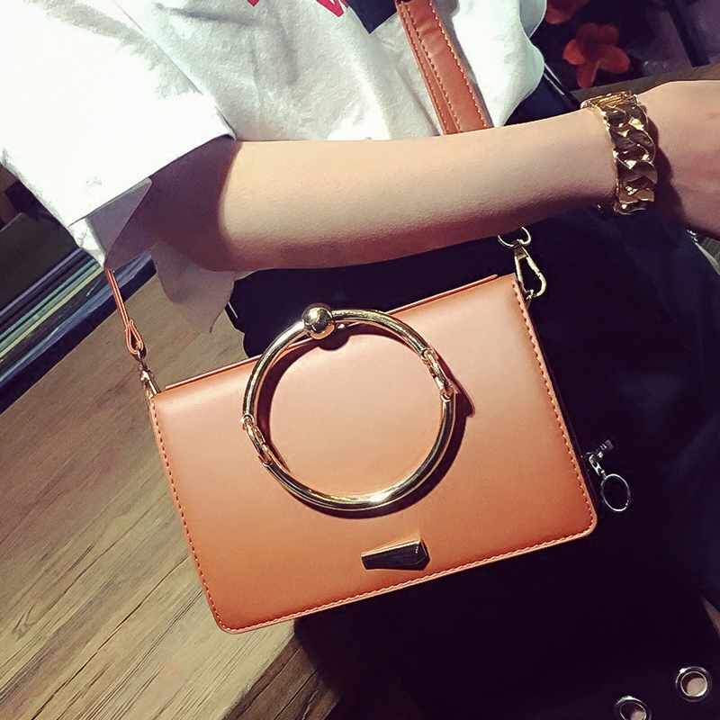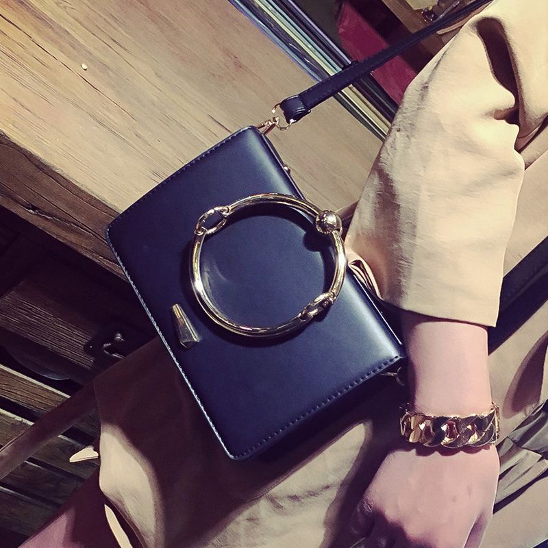 包包女新款潮時尚圓環手提單肩女包韓版百搭斜挎包迷你小方包