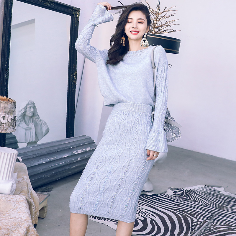 秋裝女毛線套裝裙2018冬新款針織衫時尚女裝打底毛衣加裙子兩件套