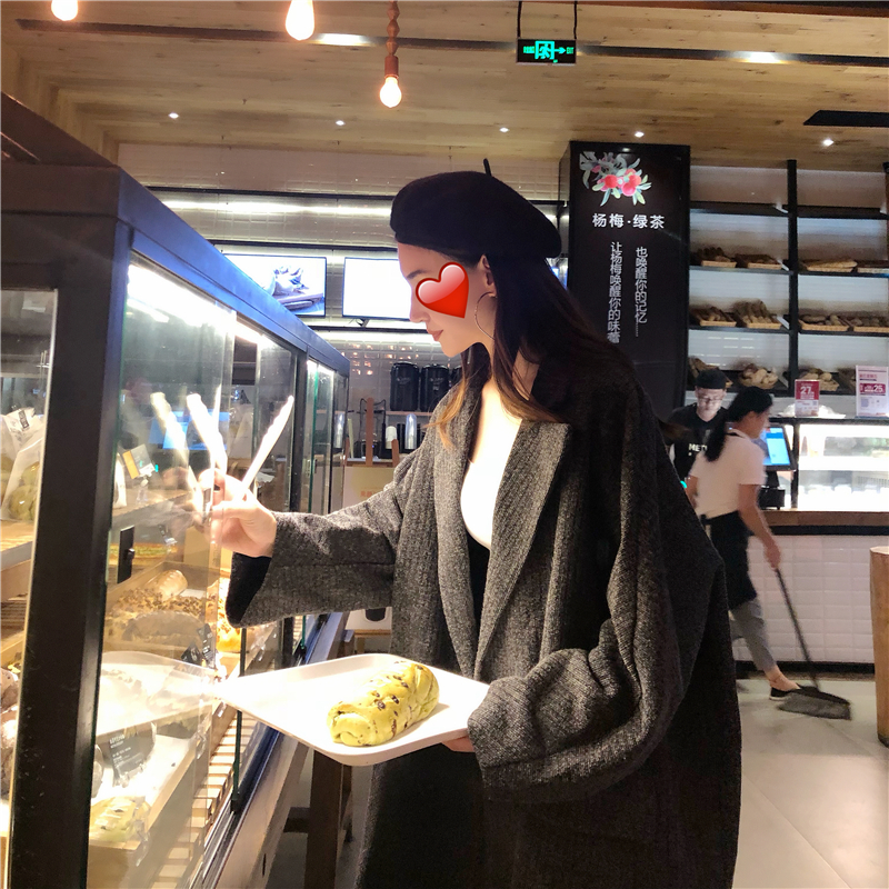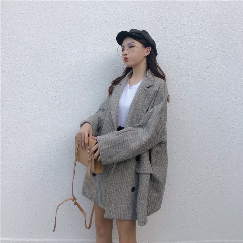 / 時尚小香風新款韓版復古chic秋季簡約雙排扣毛呢寬松氣質大衣外套