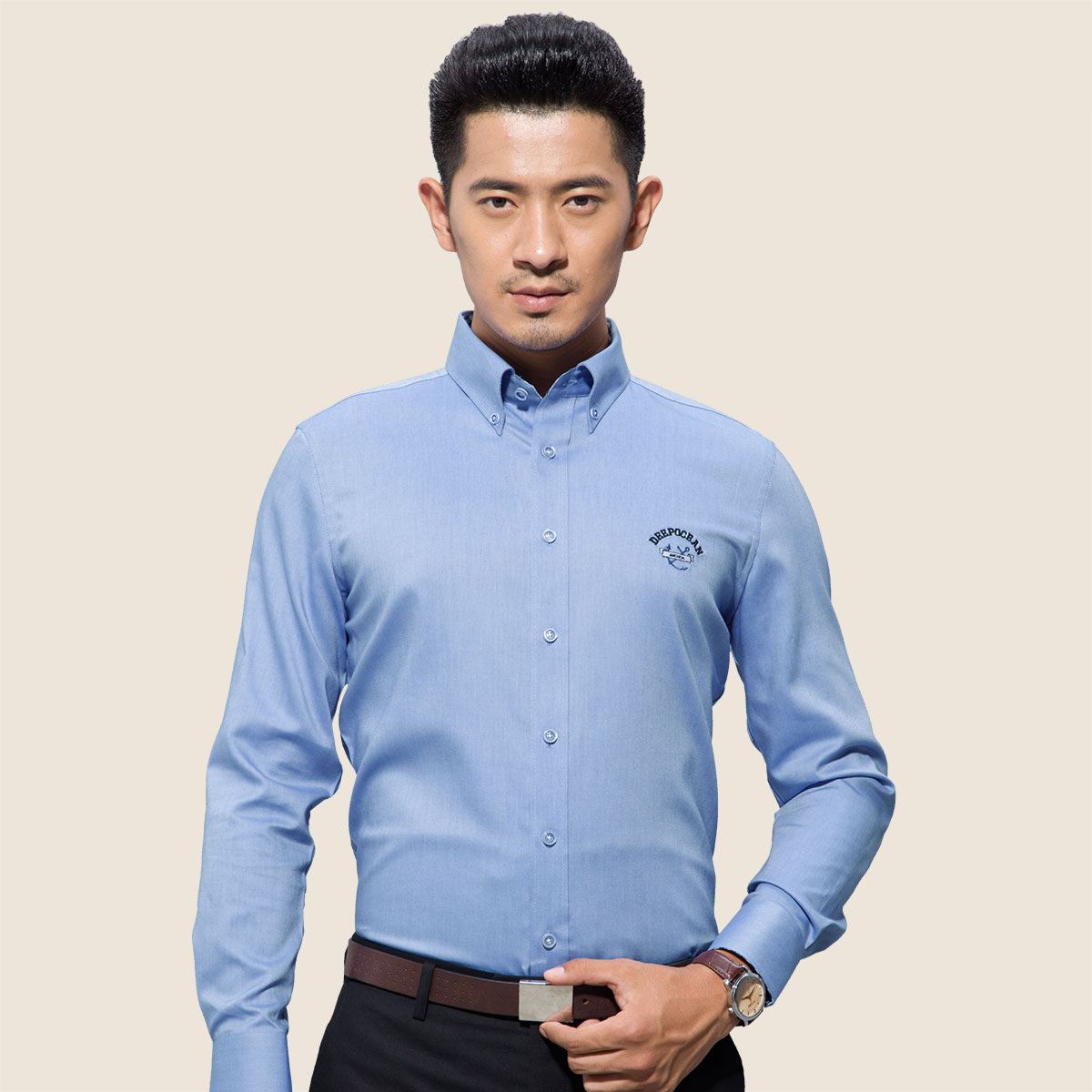 秋季襯衫男士長袖韓版純棉免燙牛津紡藍色修身DeepOcean襯衣