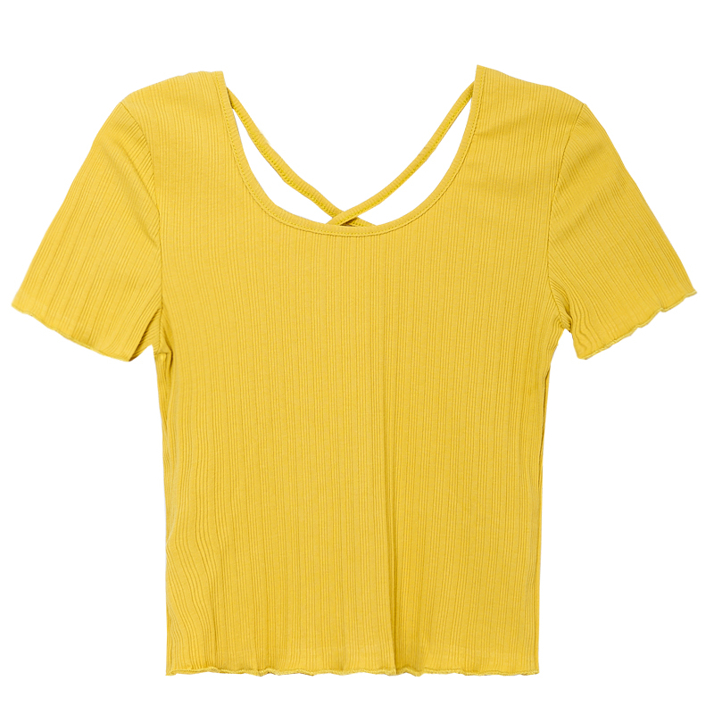 / 夏裝新款韓版t恤女短袖圓領修身木耳邊上衣百搭純色打底衫潮
