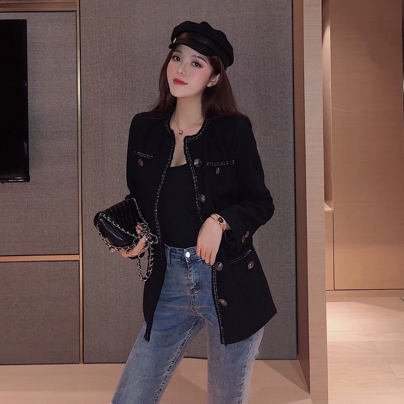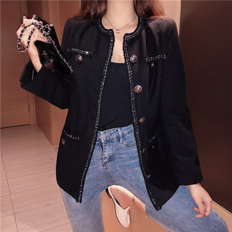 / 復古氣質百搭新款秋季韓版chic長袖小西裝單排扣時尚顯瘦毛呢外套