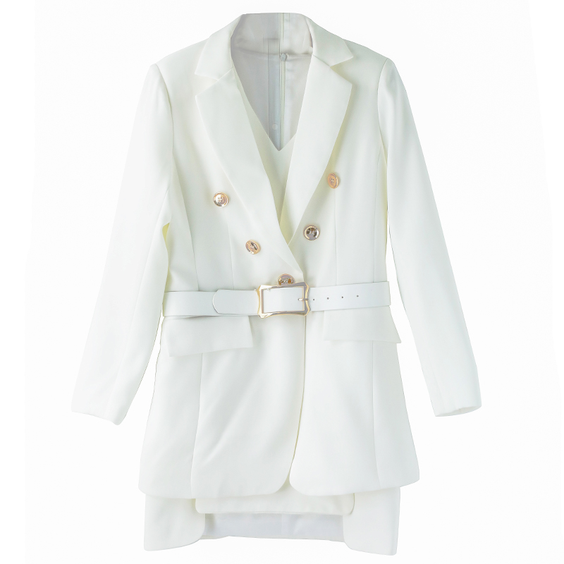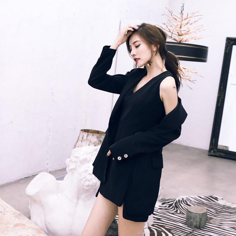 / 2018秋季新款名媛網紅中長款外套小西裝V領背心裙兩件洋氣OL套裝