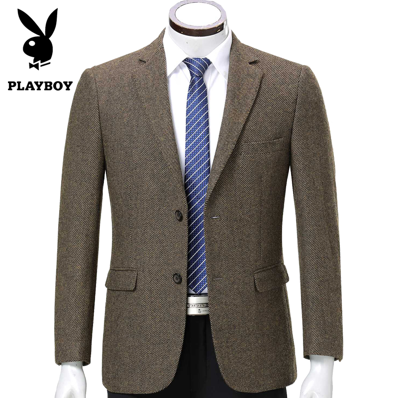 / 冬裝花花公子品牌中年男士西服商務休閑男裝羊毛厚款單件西裝外套