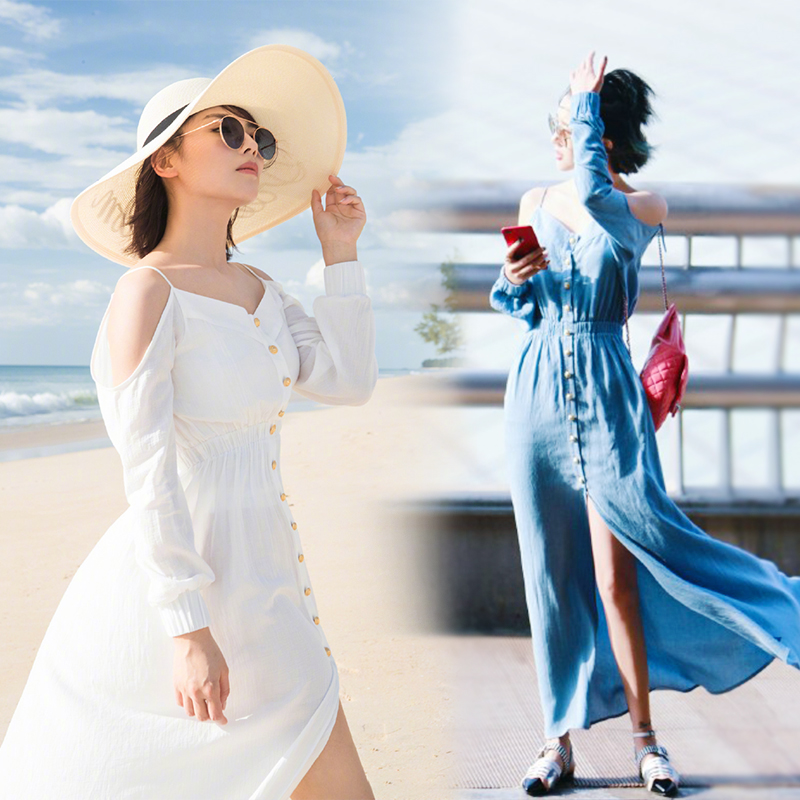 新款潮韓版仙女長裙歡樂頌劉濤同款chic裙子夏季吊帶連衣裙女