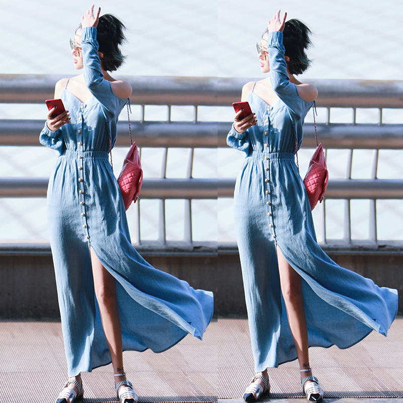 / 新款潮韓版仙女長裙歡樂頌劉濤同款chic裙子夏季吊帶連衣裙女