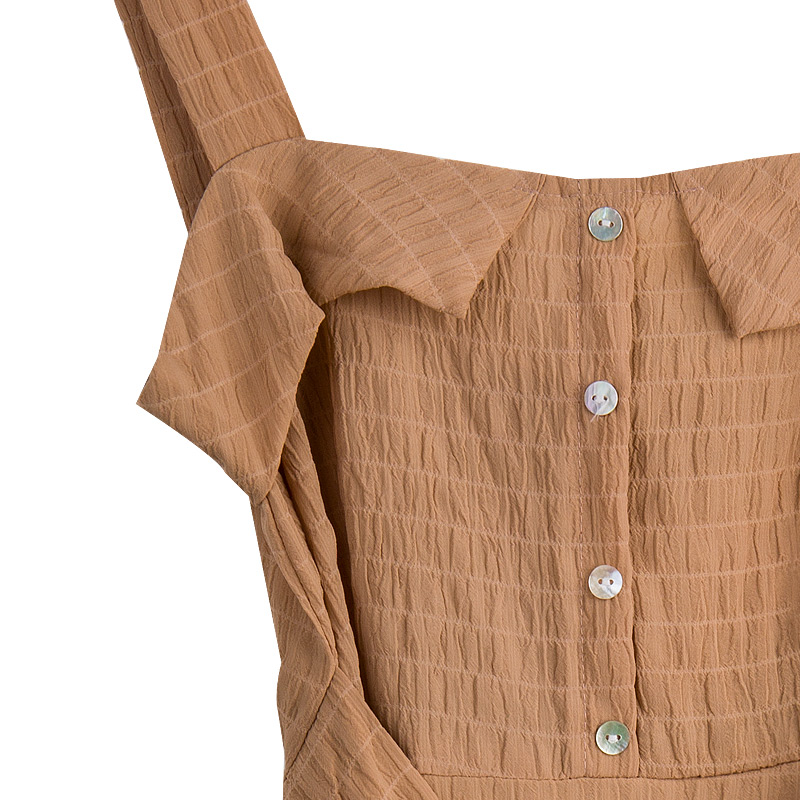 吊帶抹胸式的領口,露出性感的鎖骨領口