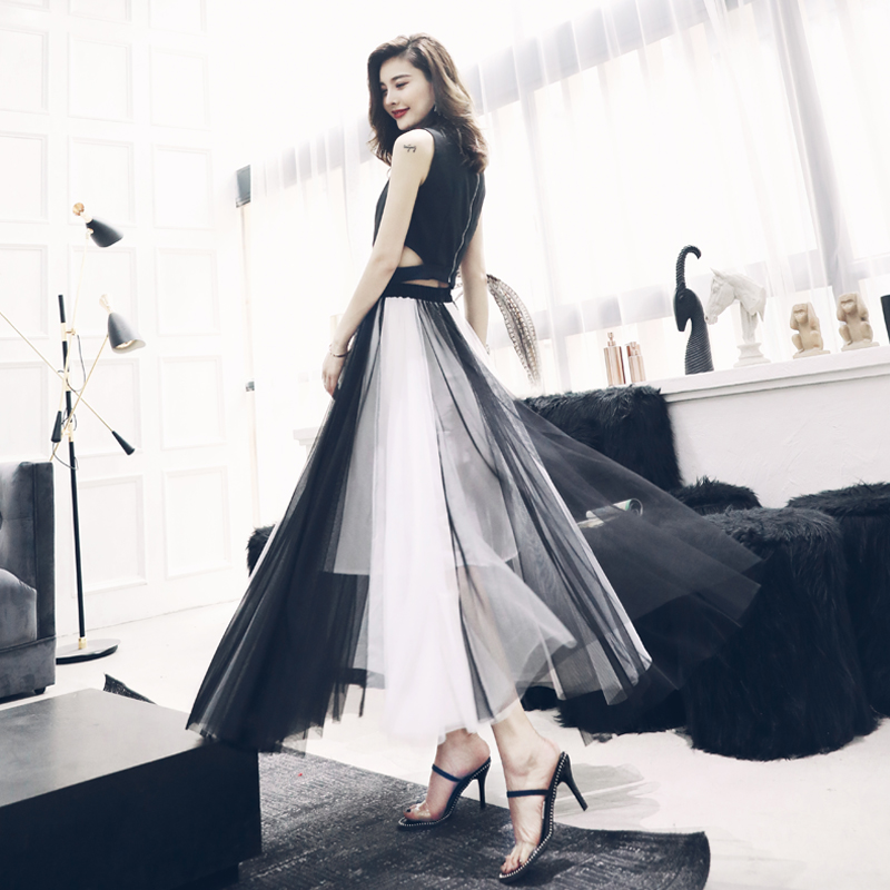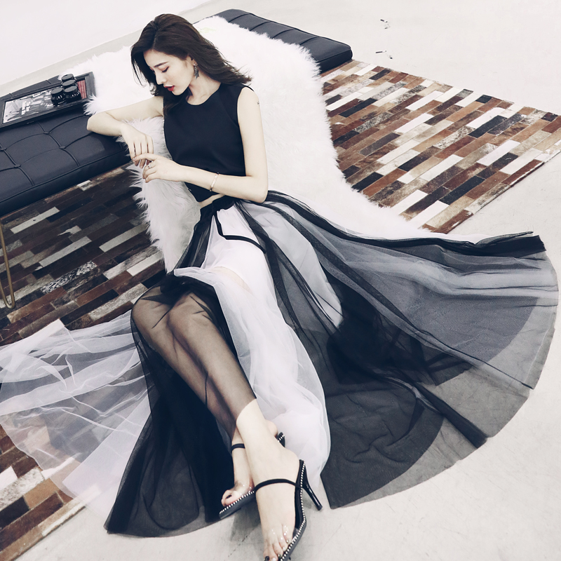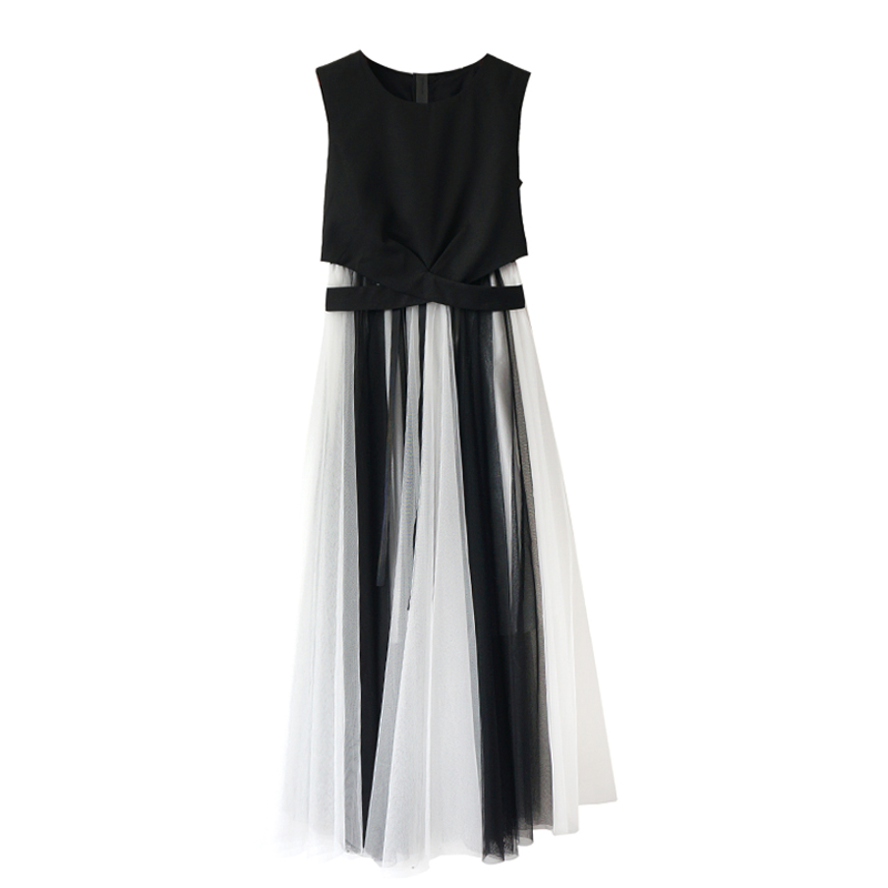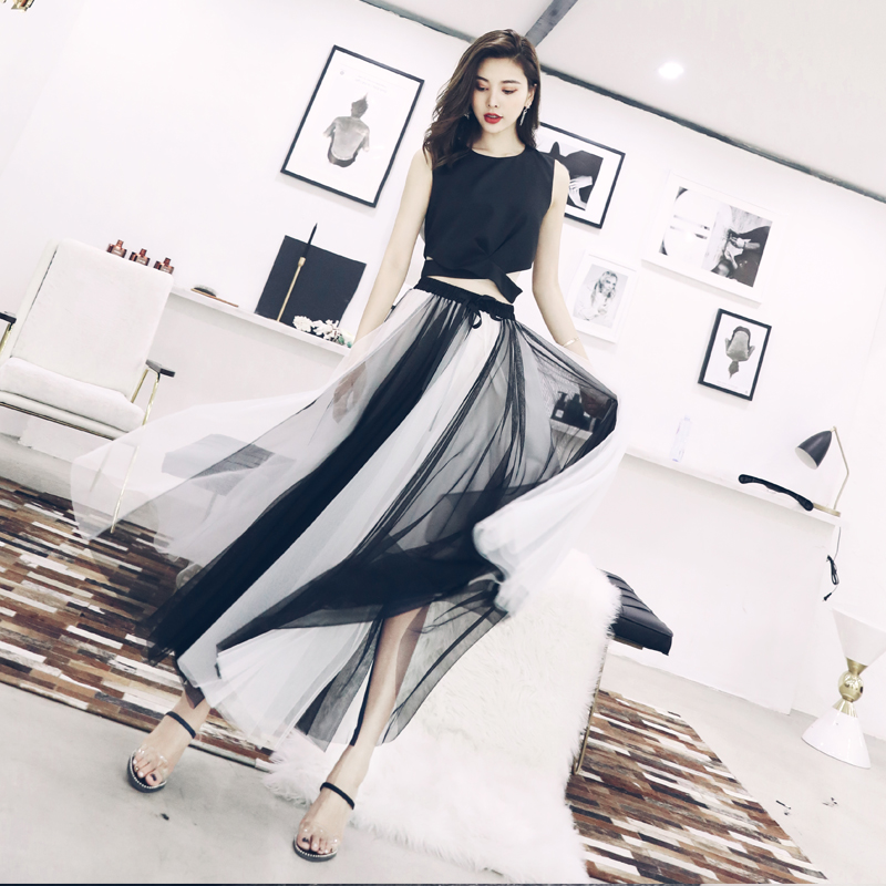 / 溫柔名媛歐洲站無袖上衣套裝女裝夏2018新款時尚網紗長裙兩件套潮