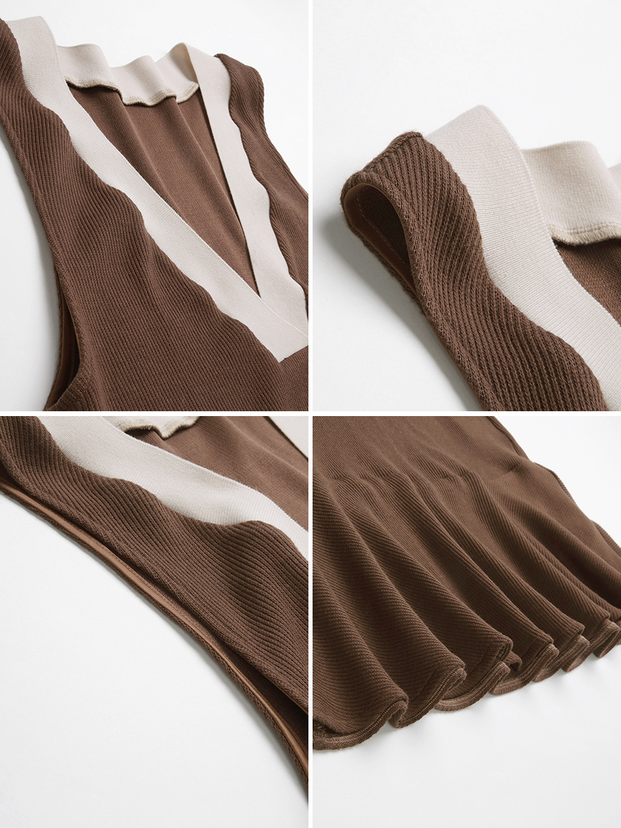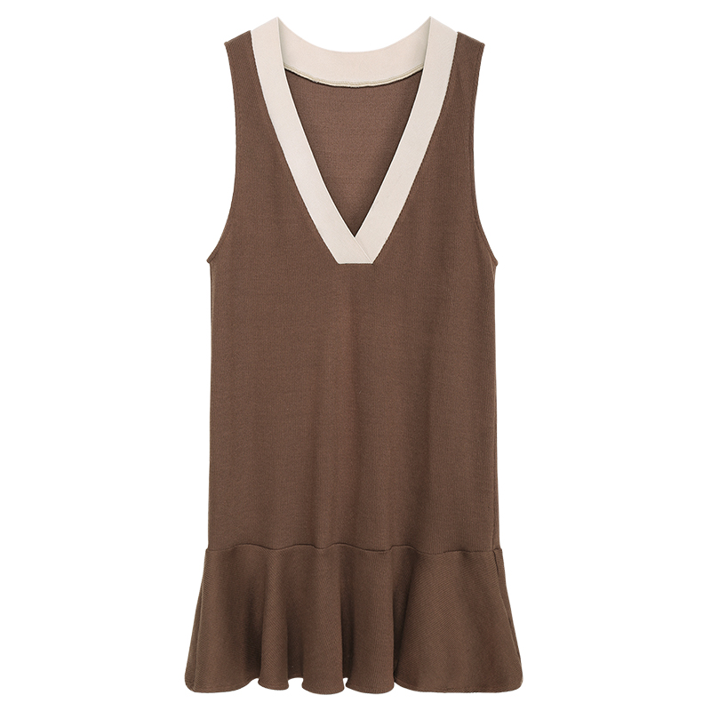 MG小象V領連衣裙女秋冬2018新款港味復古chic針織裙子無袖背心裙