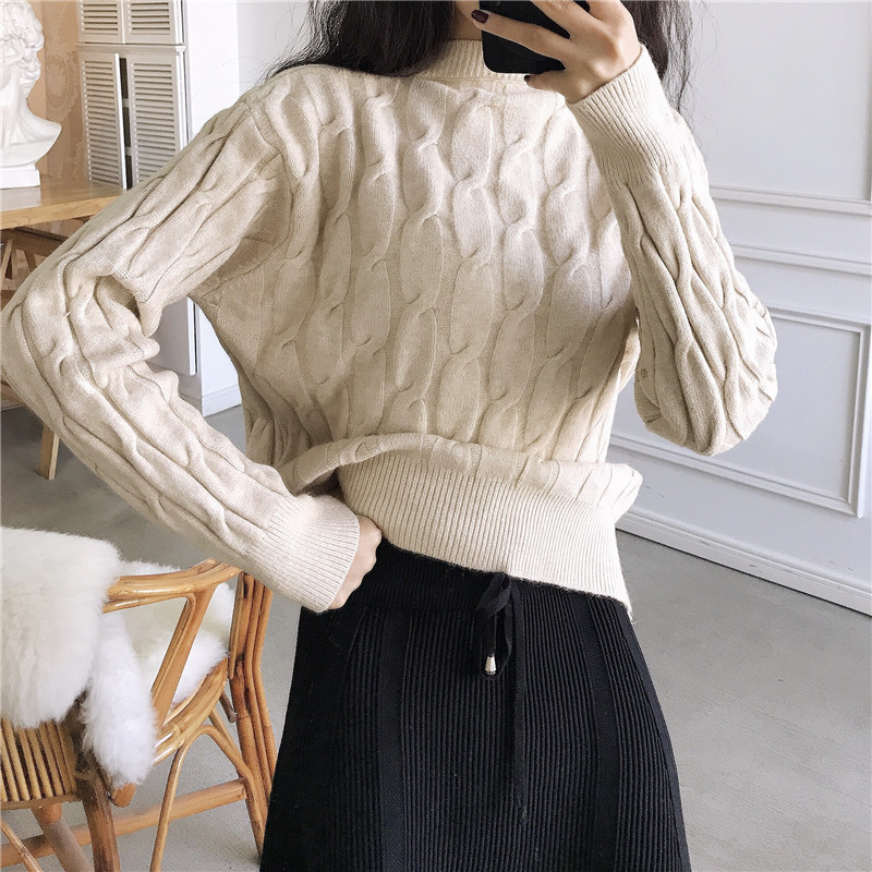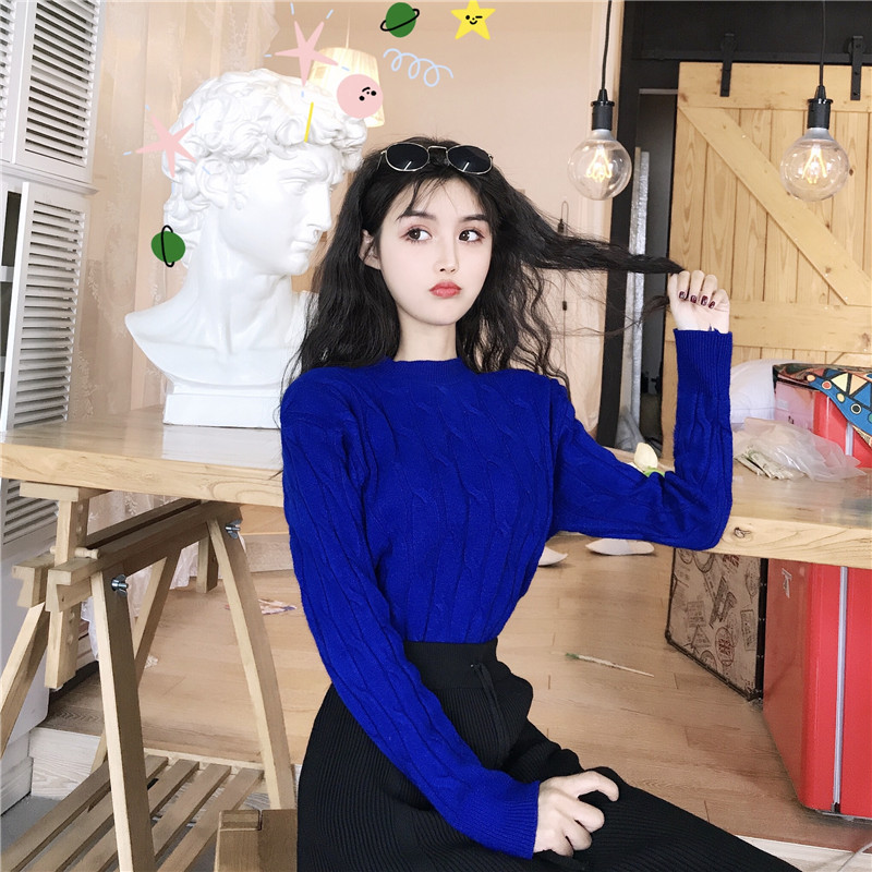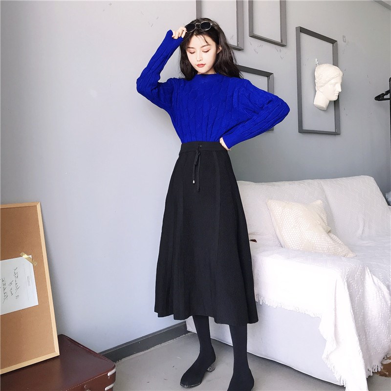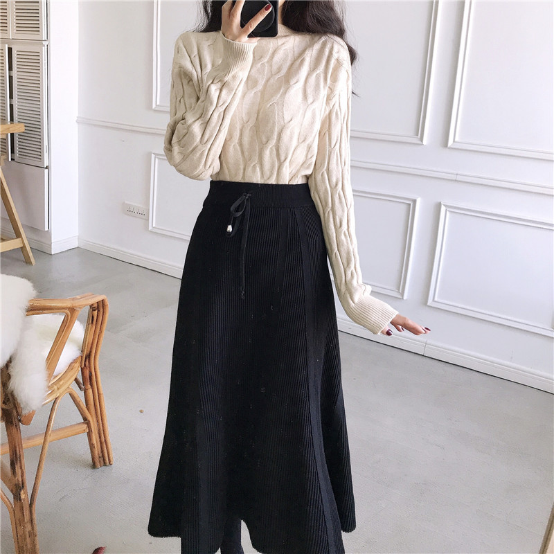 慵懶風麻花韓版寬松套頭毛衣+針織中長款A字裙女