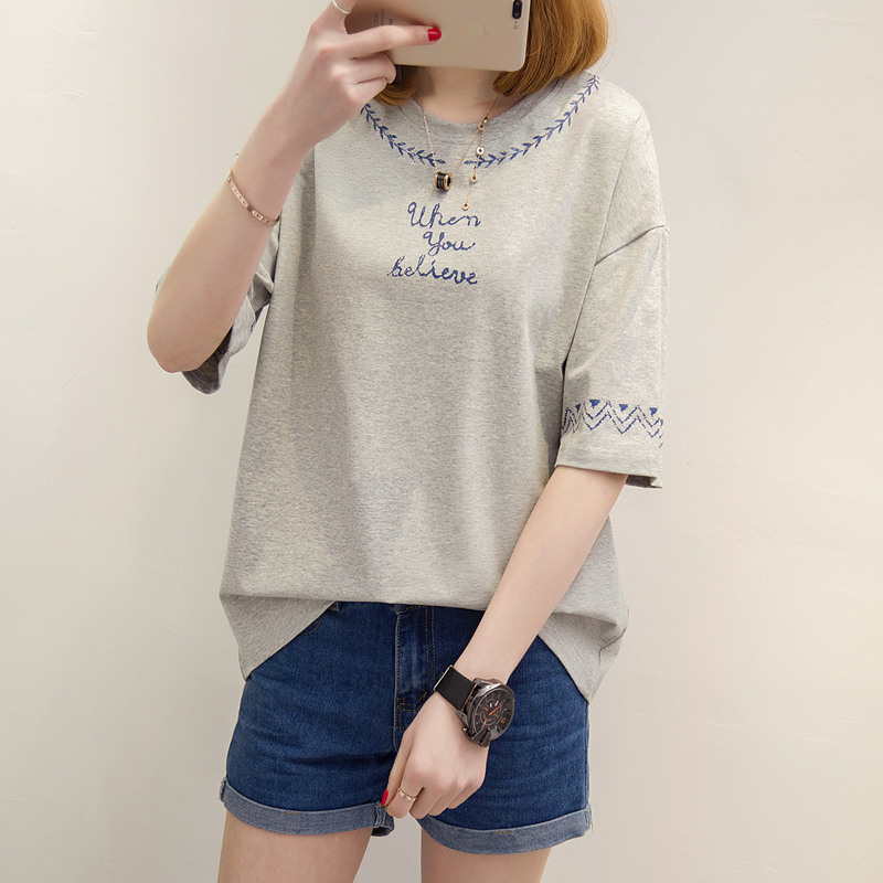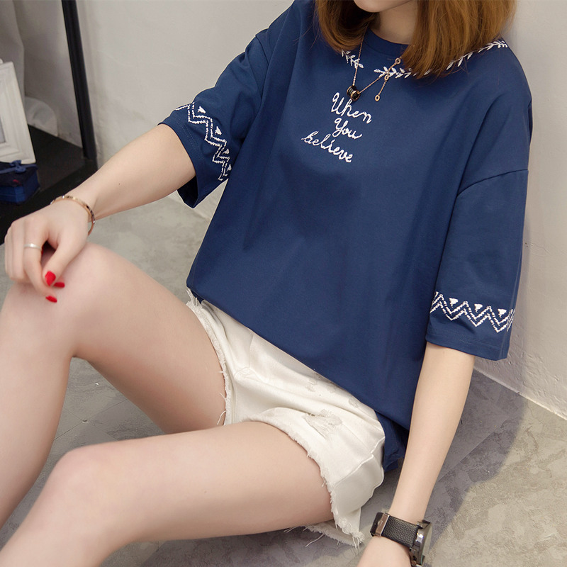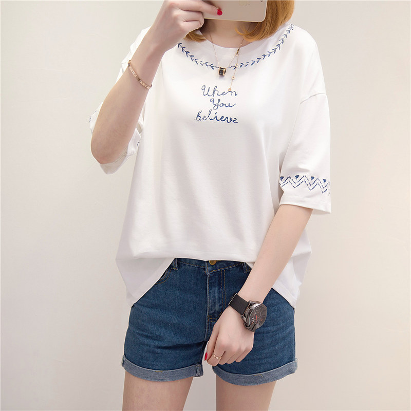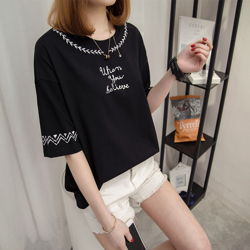 / 短袖上衣女夏新款薄t恤女中長袖寬松韓版打底小衫百搭衣服女