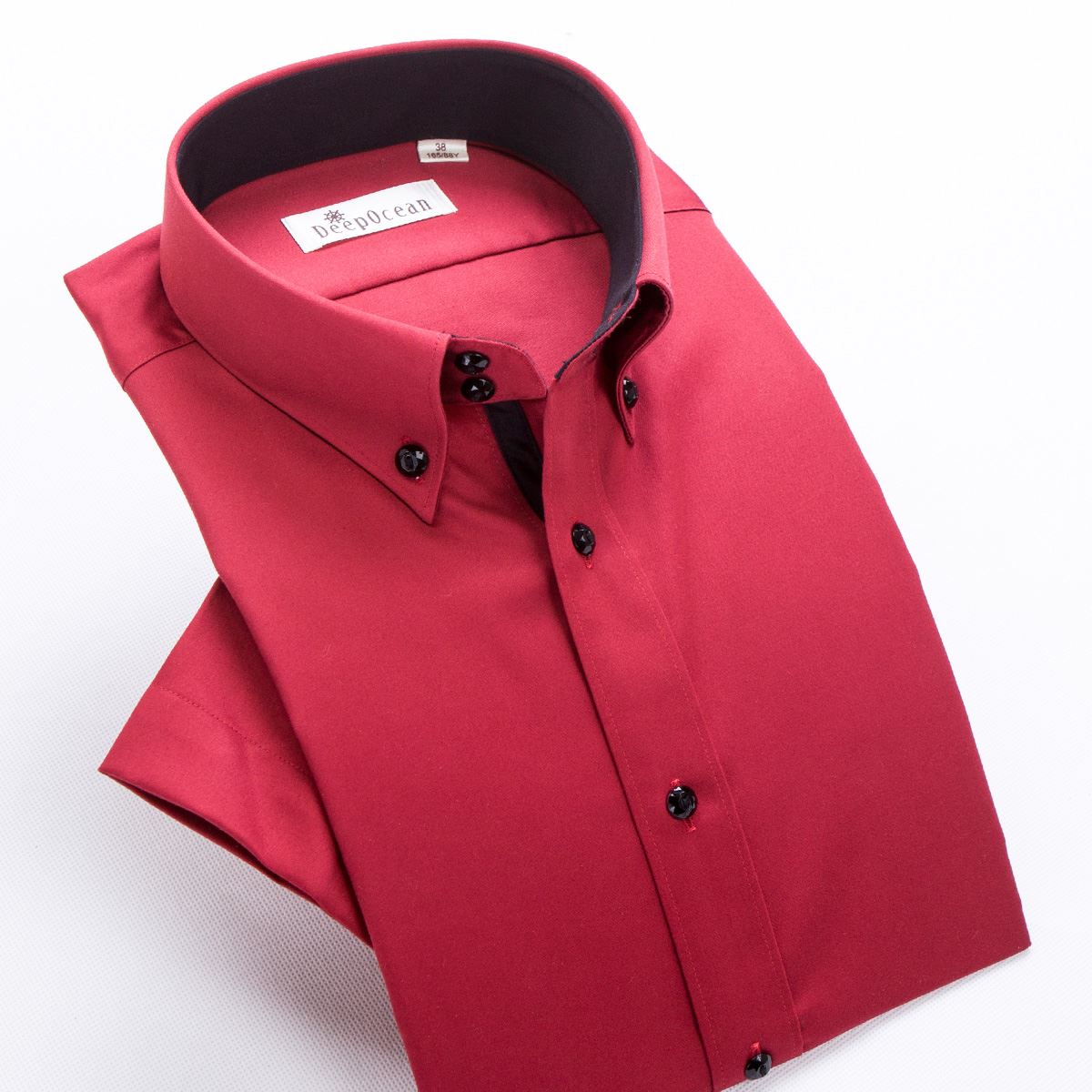 / 夏季新品深海絲光棉男士短袖結婚襯衫商務修身型純棉紅色新郎襯衣