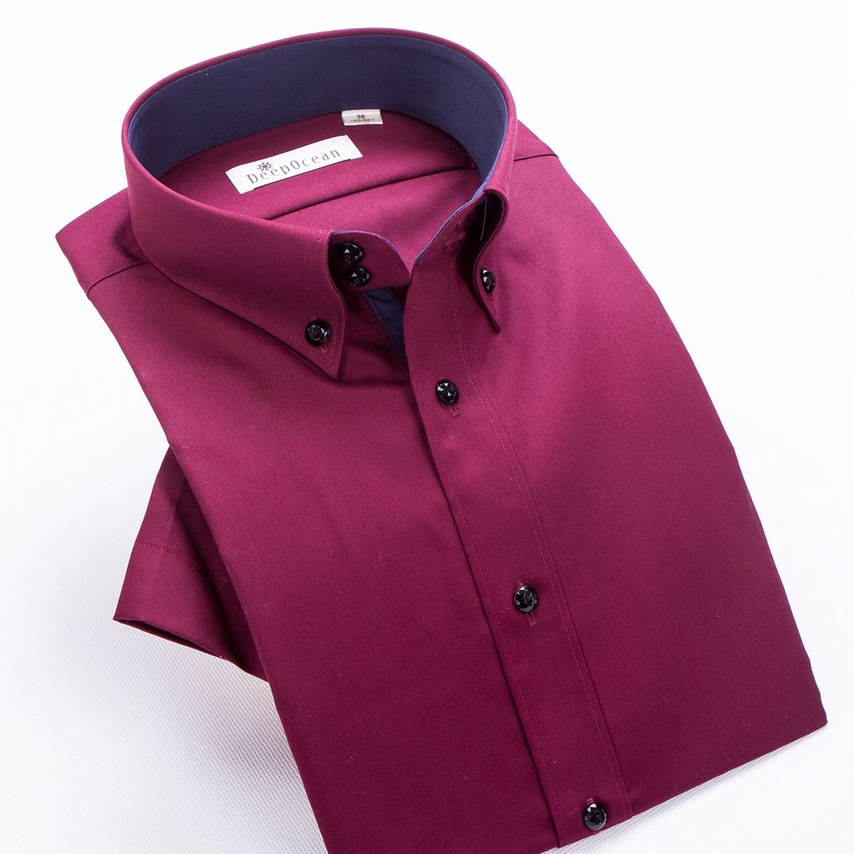 夏季新品深海絲光棉男士短袖結婚襯衫商務修身型純棉紅色新郎襯衣