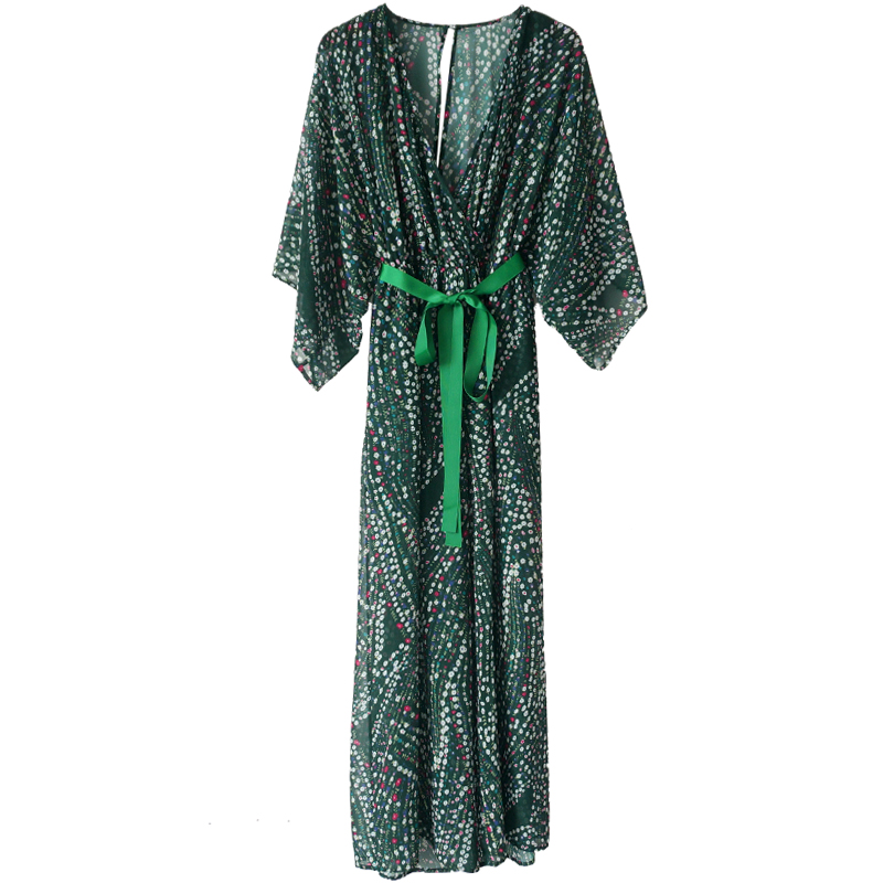 / 氣質時尚印花連體褲2018夏季新款V領高腰系帶顯瘦顯高闊腿長褲女