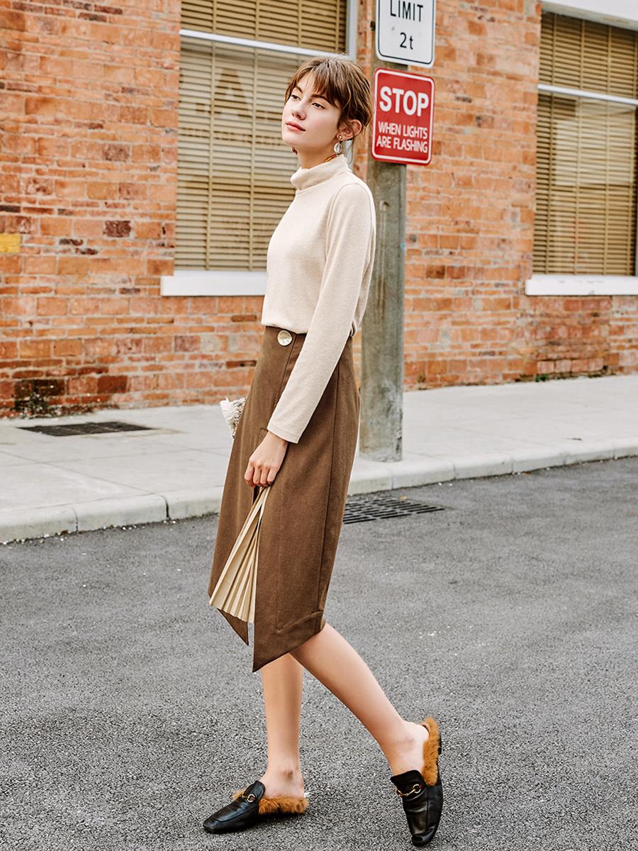 / MG小象不規則半身裙女秋冬假兩件開叉拼接裙子2018新款高腰a字裙