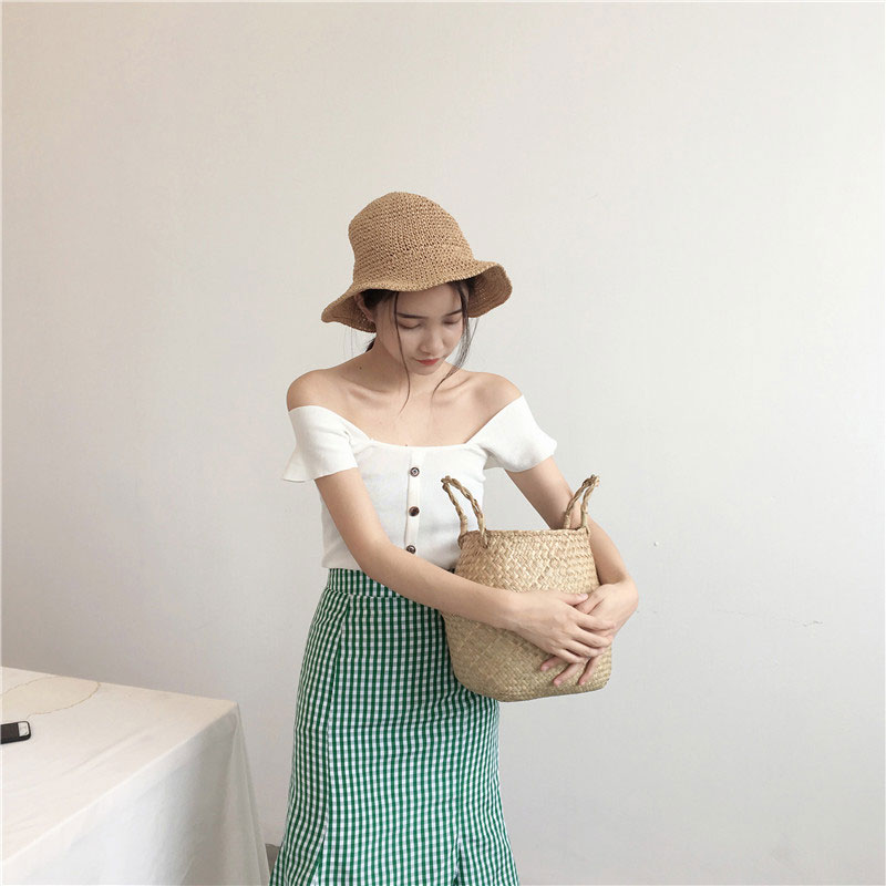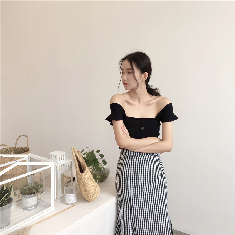 / 韓風Chic單排扣短款吊帶方領抹胸一字領兩穿針織背心顯瘦女夏上衣