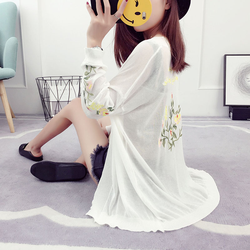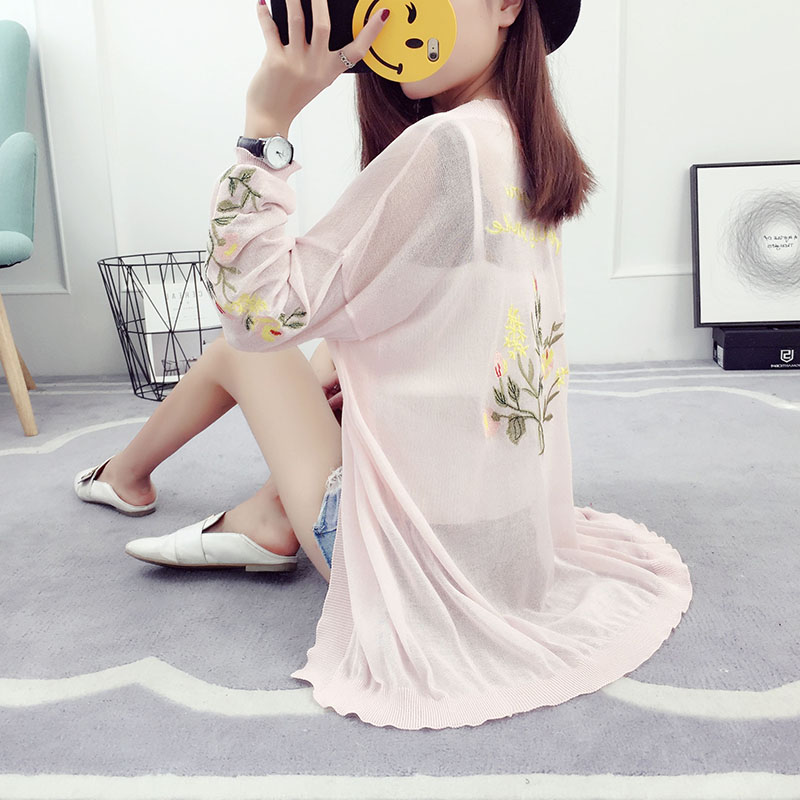 夏季針織開衫女薄款中長款寬松外搭冰絲外套韓版長袖防曬衣空調衫