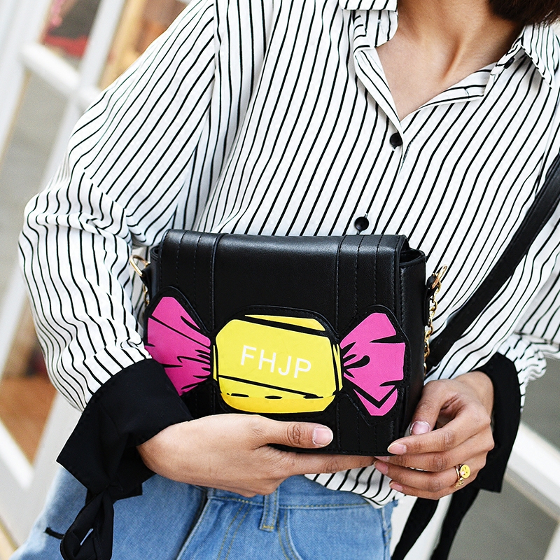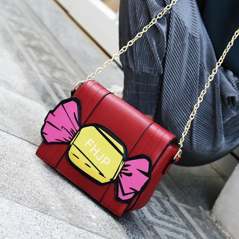 新款可愛糖果撞色鏈條包斜挎包韓版迷你小方包單肩女包小包包