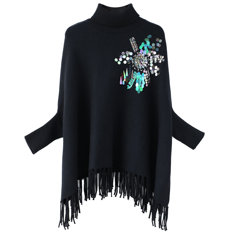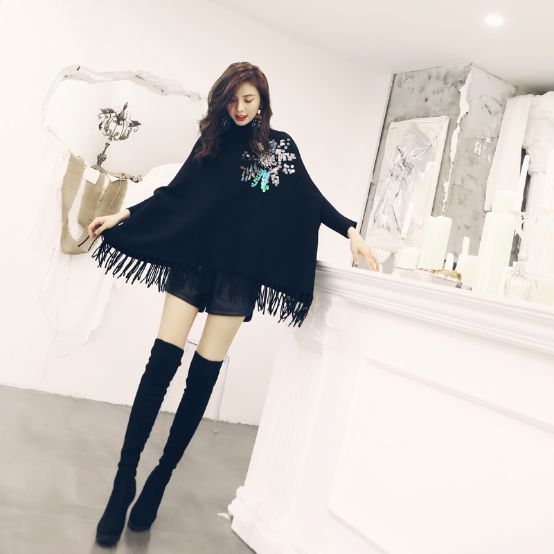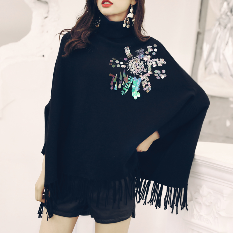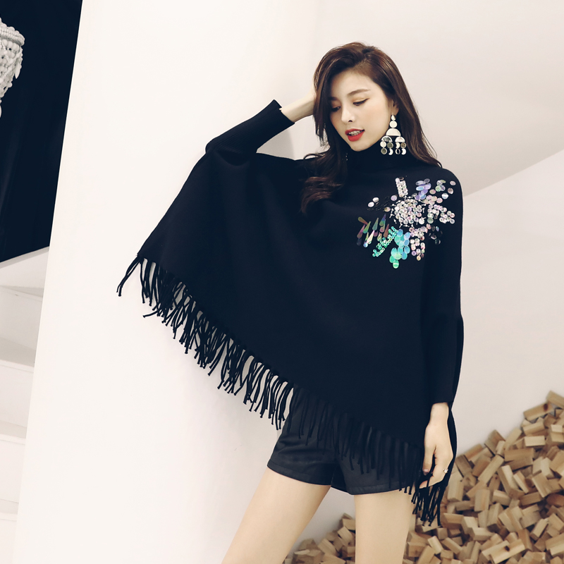 斗篷披肩外套女2018秋冬新款寬松外穿上衣套頭毛衣女裝高領針織衫