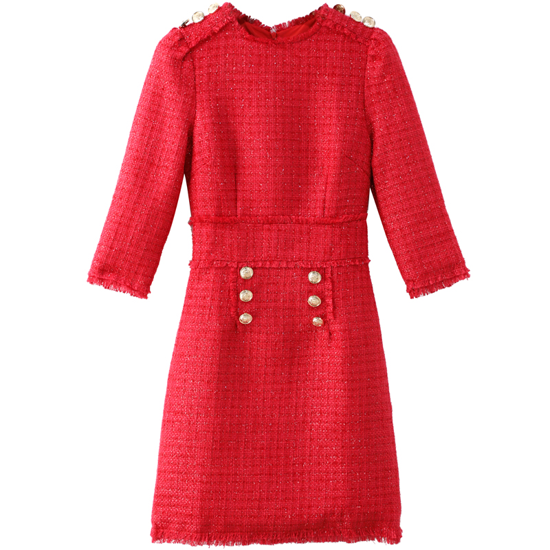 / 淑女氣質秋裝女2018新款毛呢純色連衣裙七分袖毛衣修身鉛筆裙子