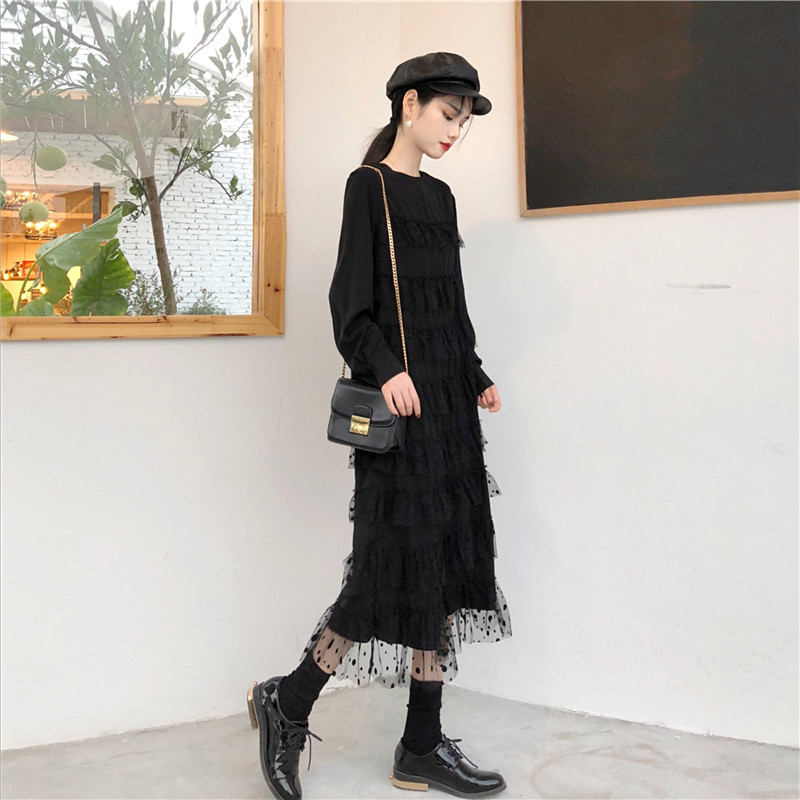 / 韓國復古風長款波點蕾絲蛋糕連衣裙修身顯瘦西服外套港風時尚套裝