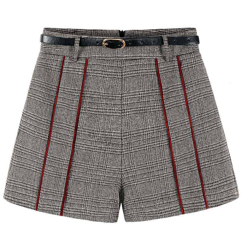 / MG小象高腰格子短褲女寬松休閑直筒褲秋冬新款港味復古chic褲子潮