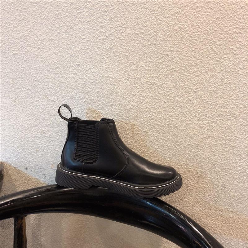/ 秋季2018新款黑色靴子圓頭PU氣質時尚復古百搭松緊帶平跟女鞋子潮