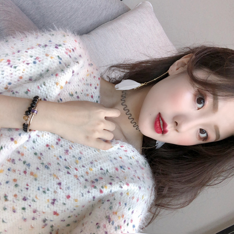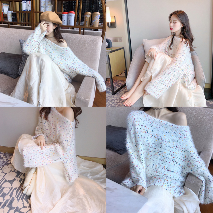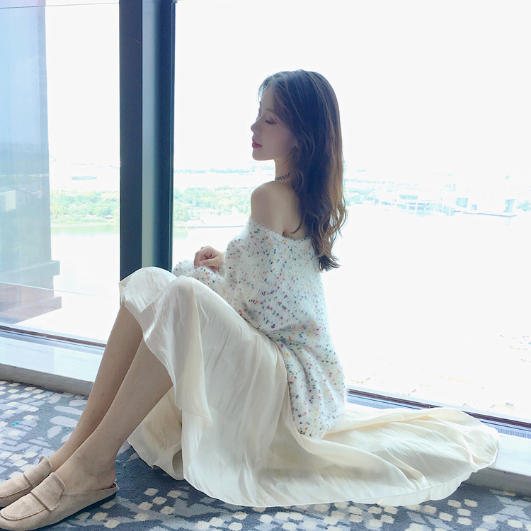 / 網紅同款新款秋季時尚套裝慵懶風多彩毛衣絲滑不規則長裙兩件套女